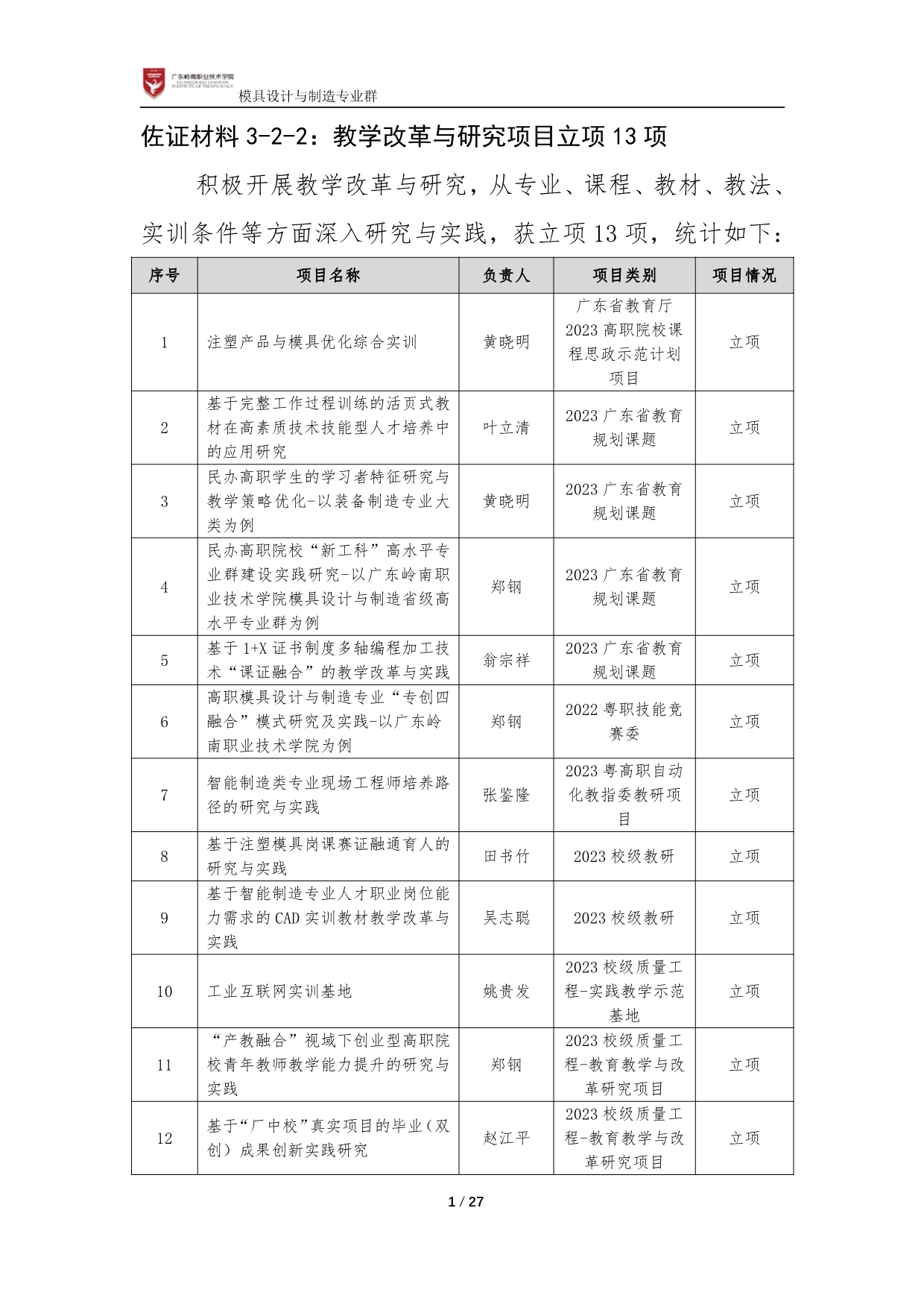 佐证材料3-2-2:教学改革与研究项目立项13项