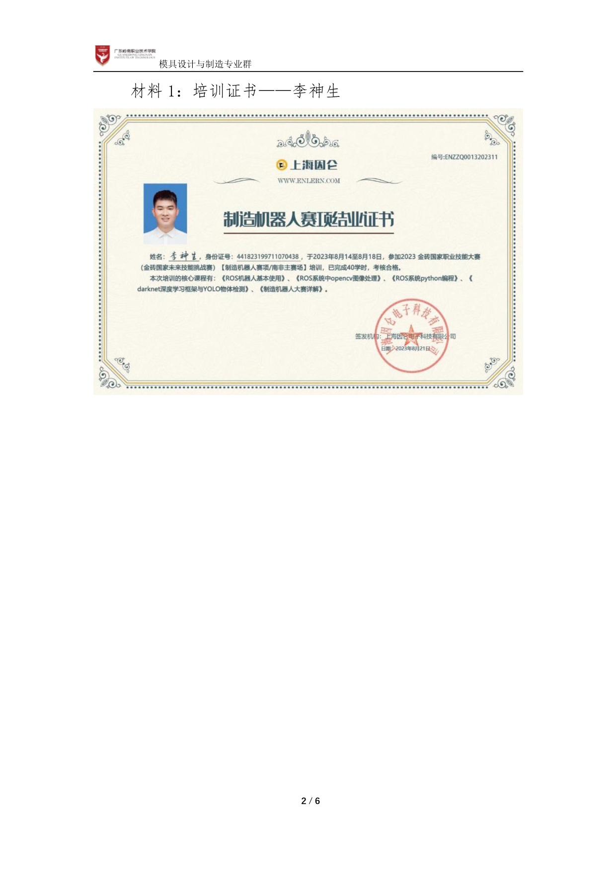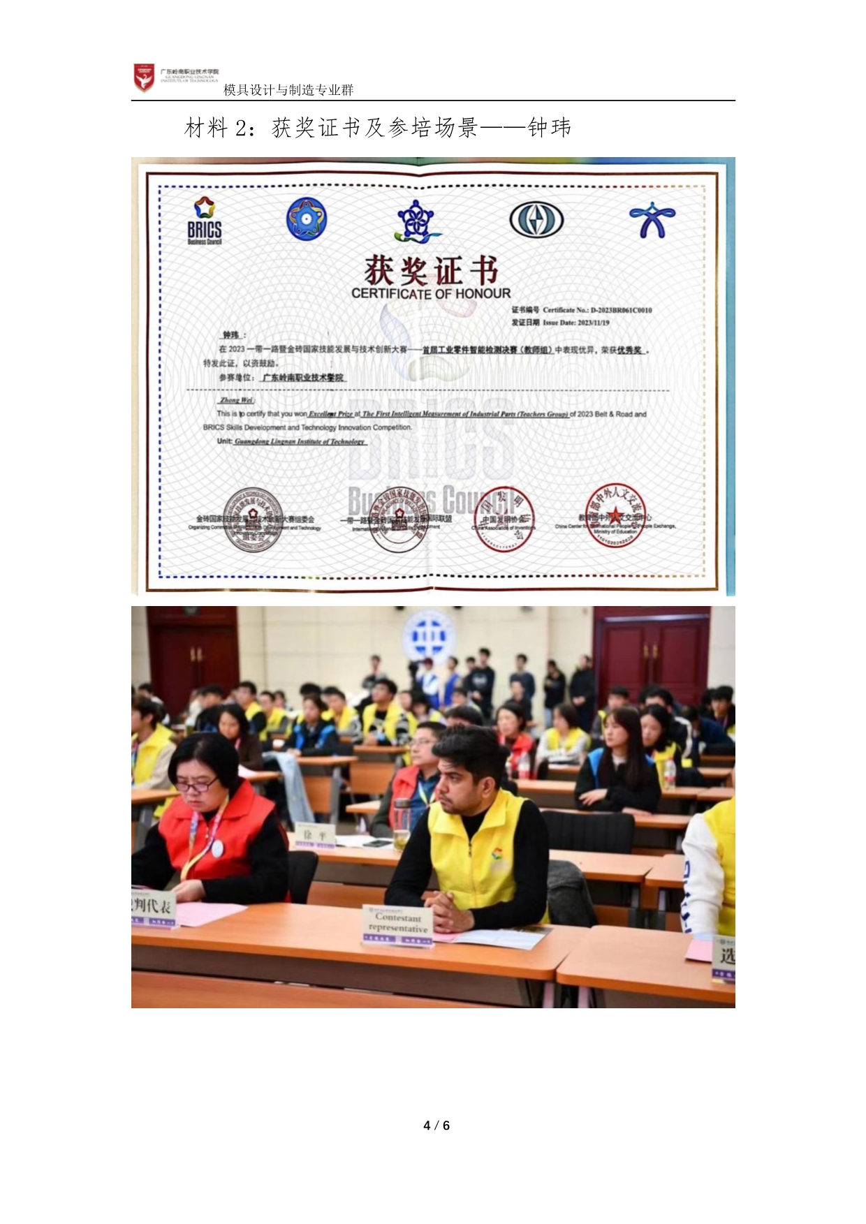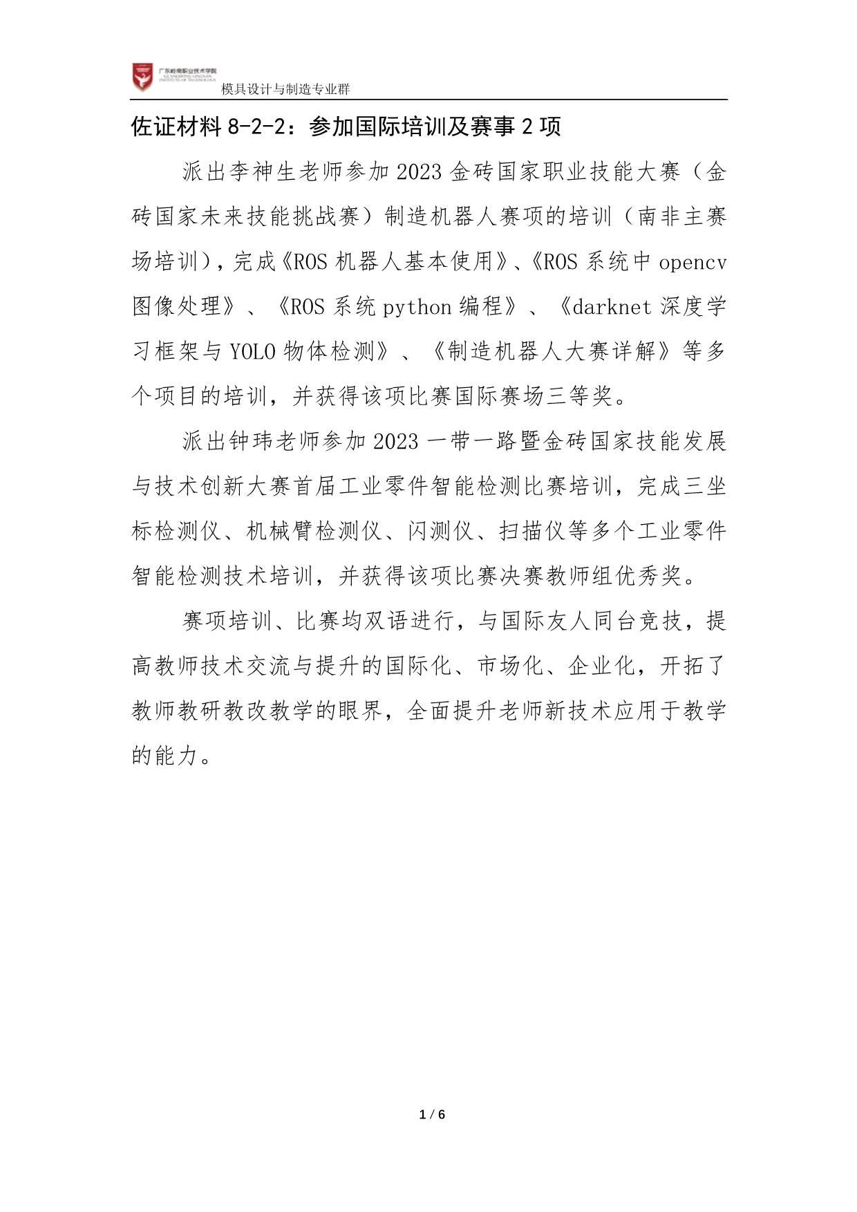 佐证材料8-2:参加国际培训及赛事2项