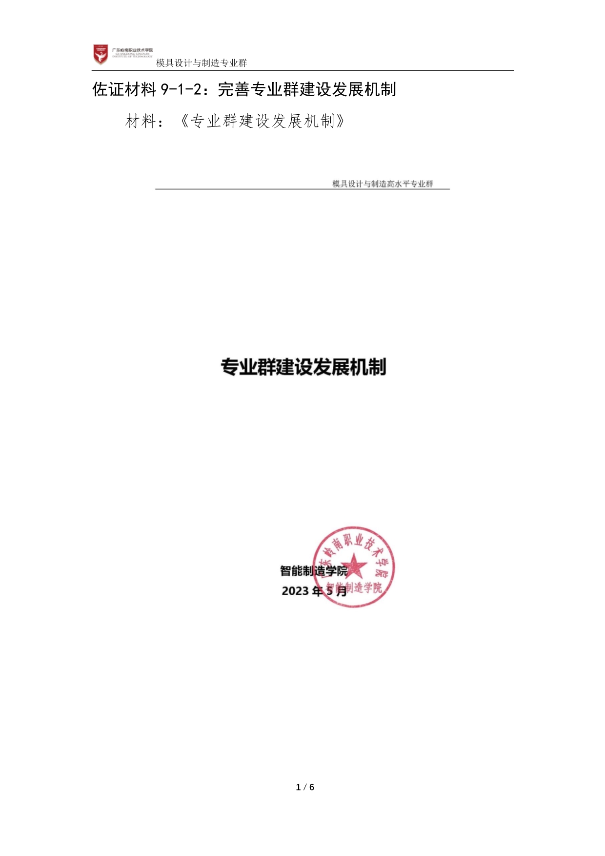 佐证材料9-1-2:完善专业群建设发展机制