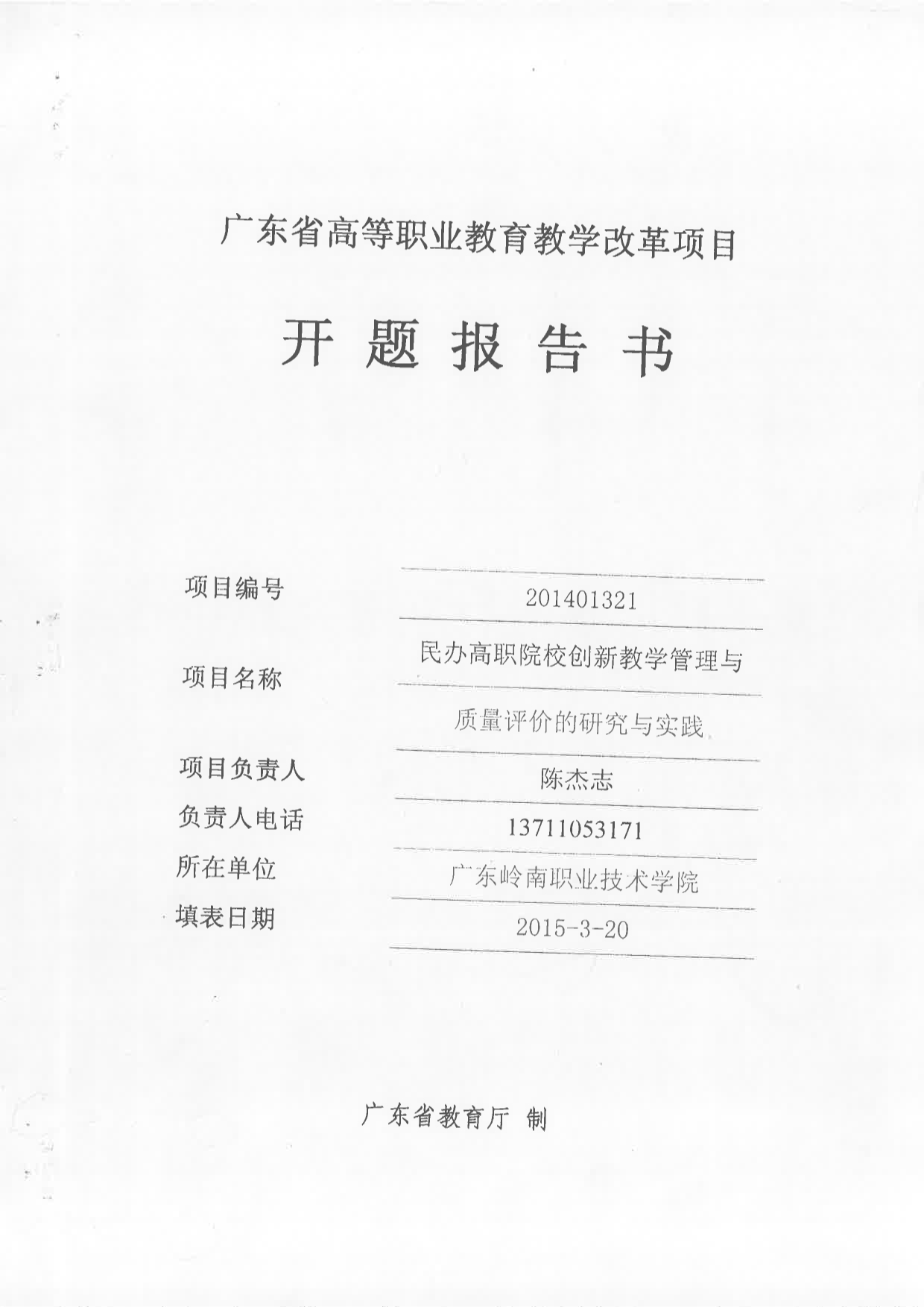 2014年度广东省高等学校质量工程教研教改项目