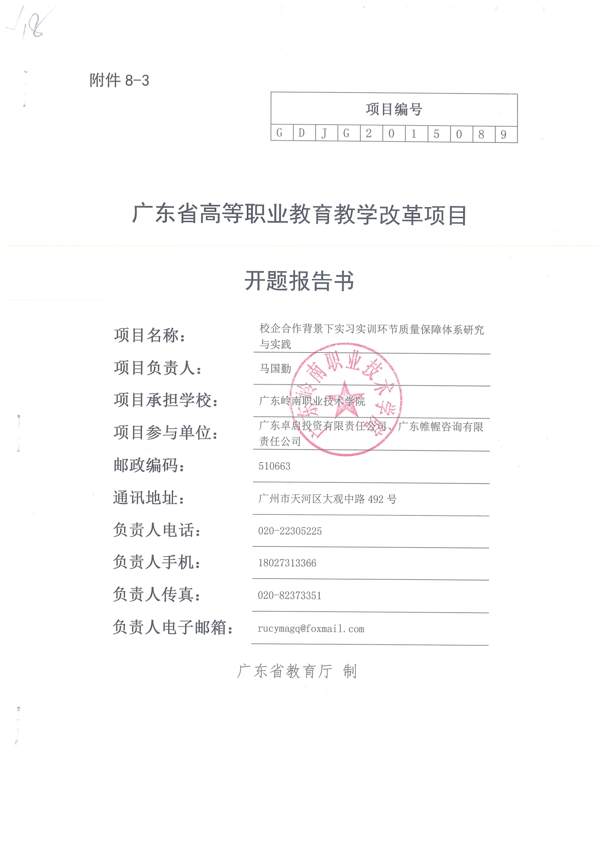 2015年度省高职教育质量工程教研教改项目