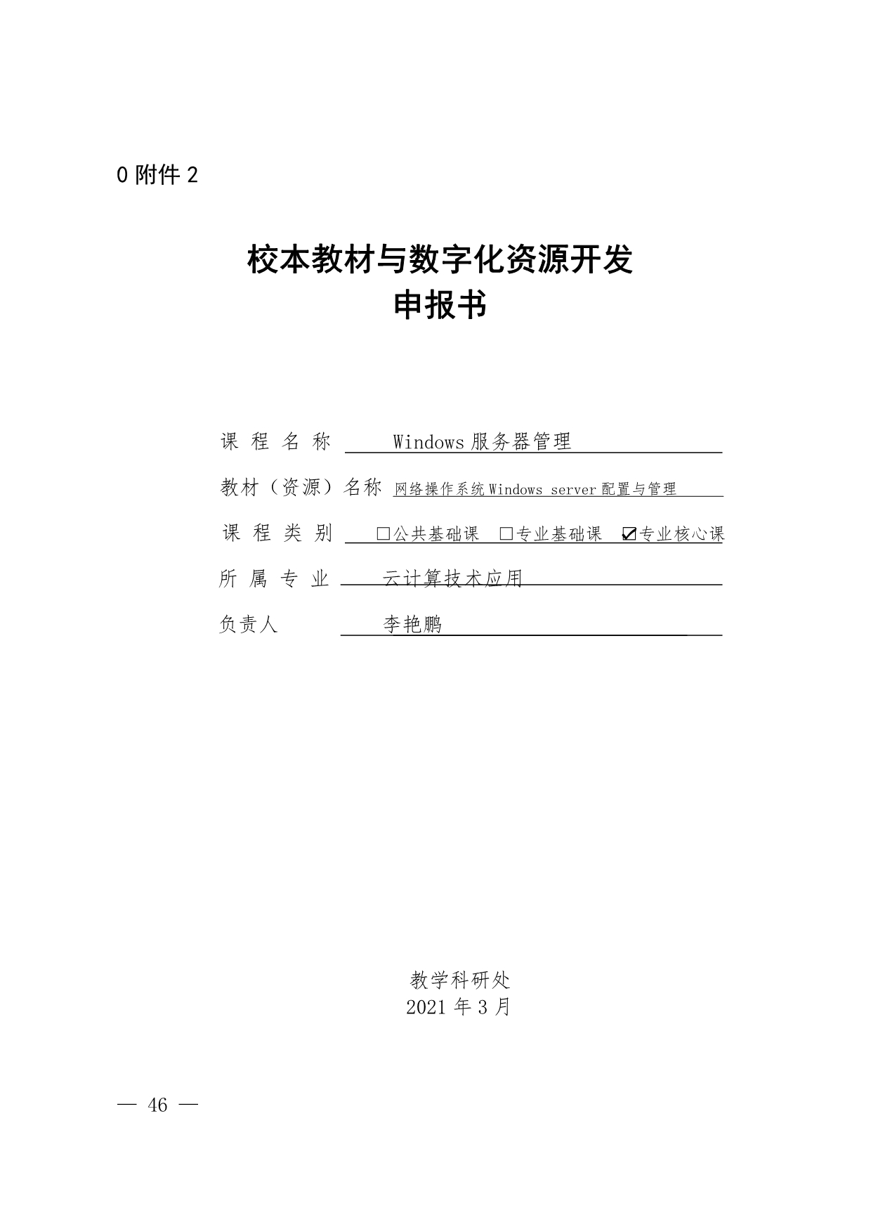 1.《网络操作系统Windows server配置与管理》申报书盖章版(李艳鹏)