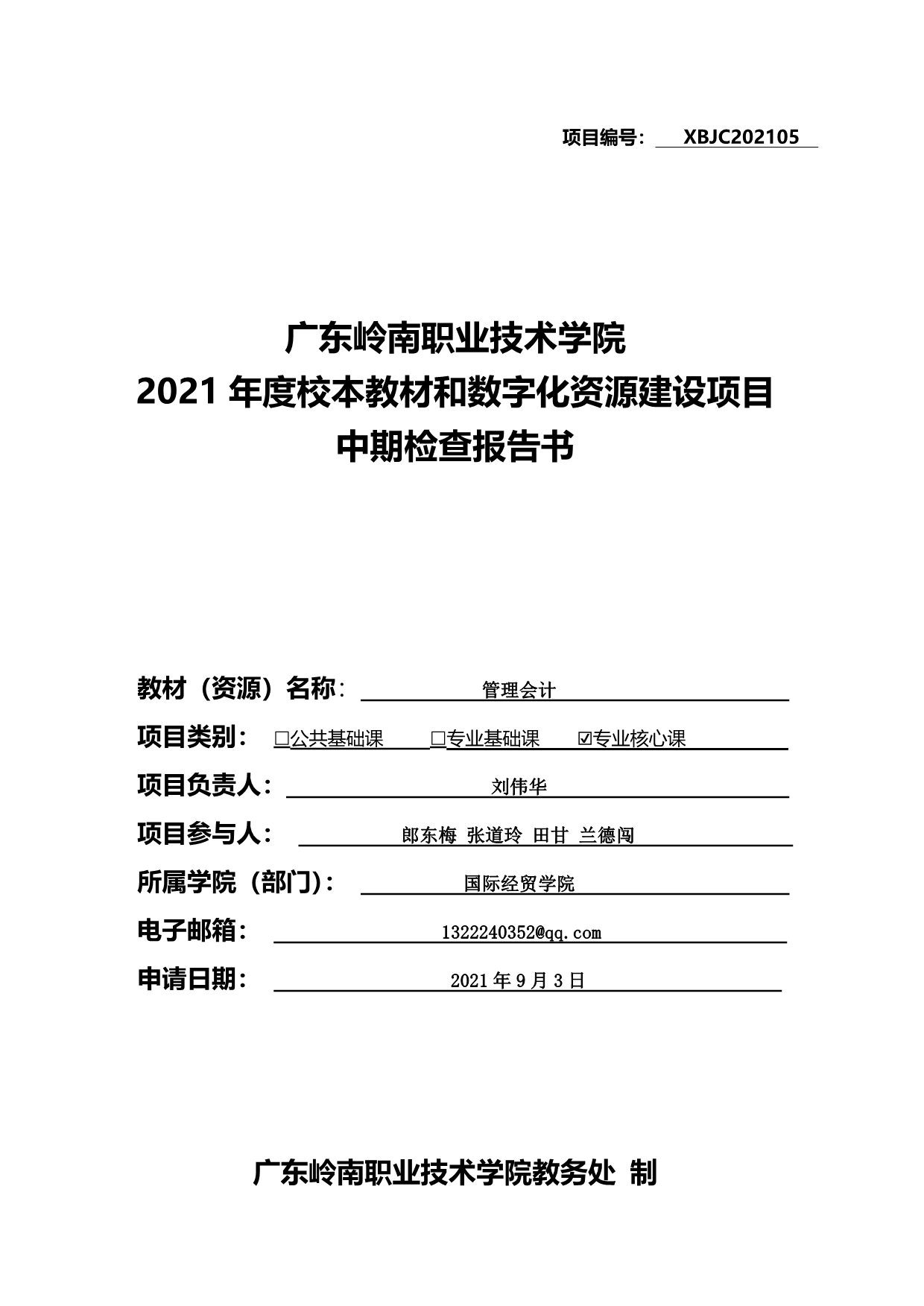 1-《管理会计》申报书(刘伟华)