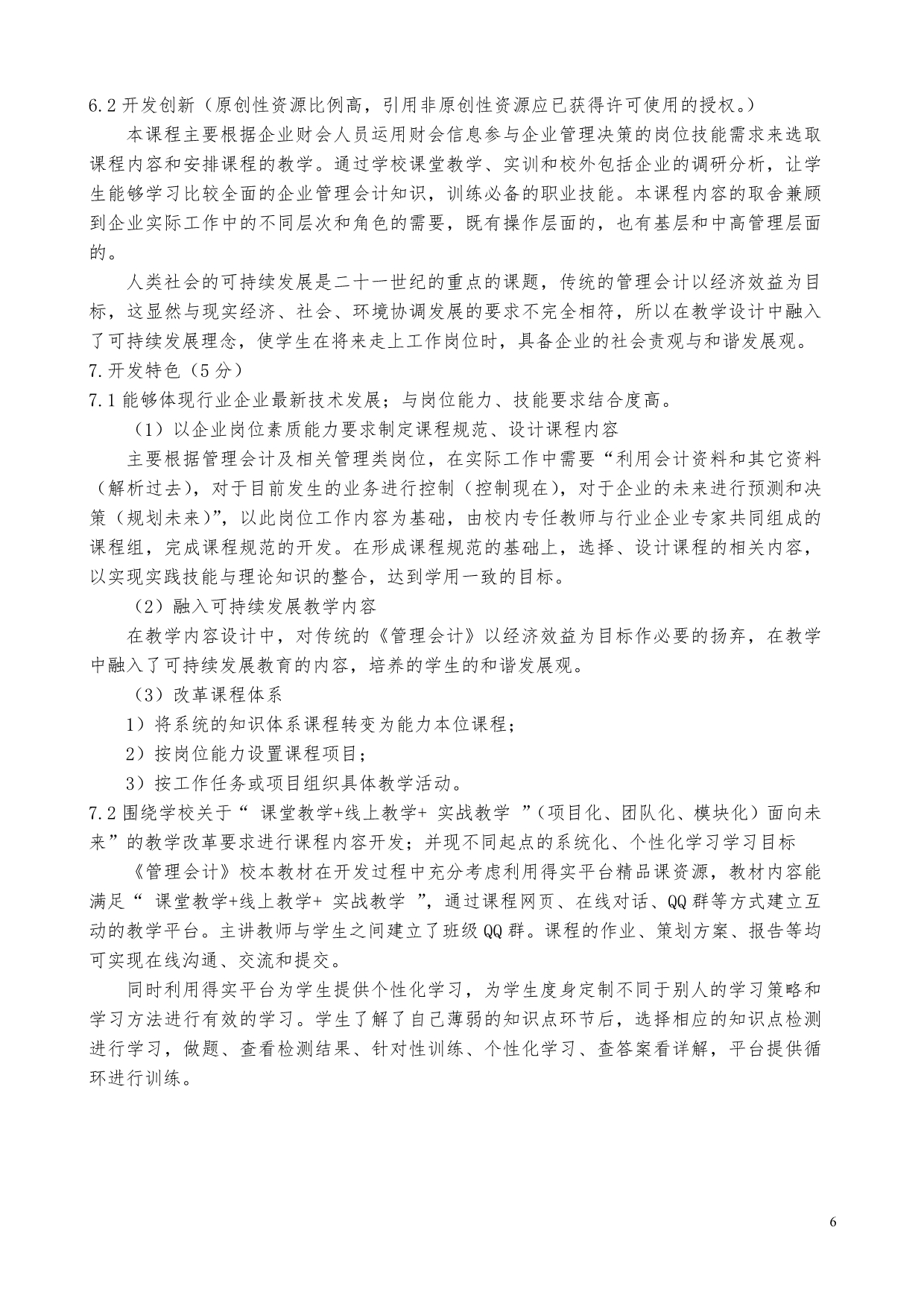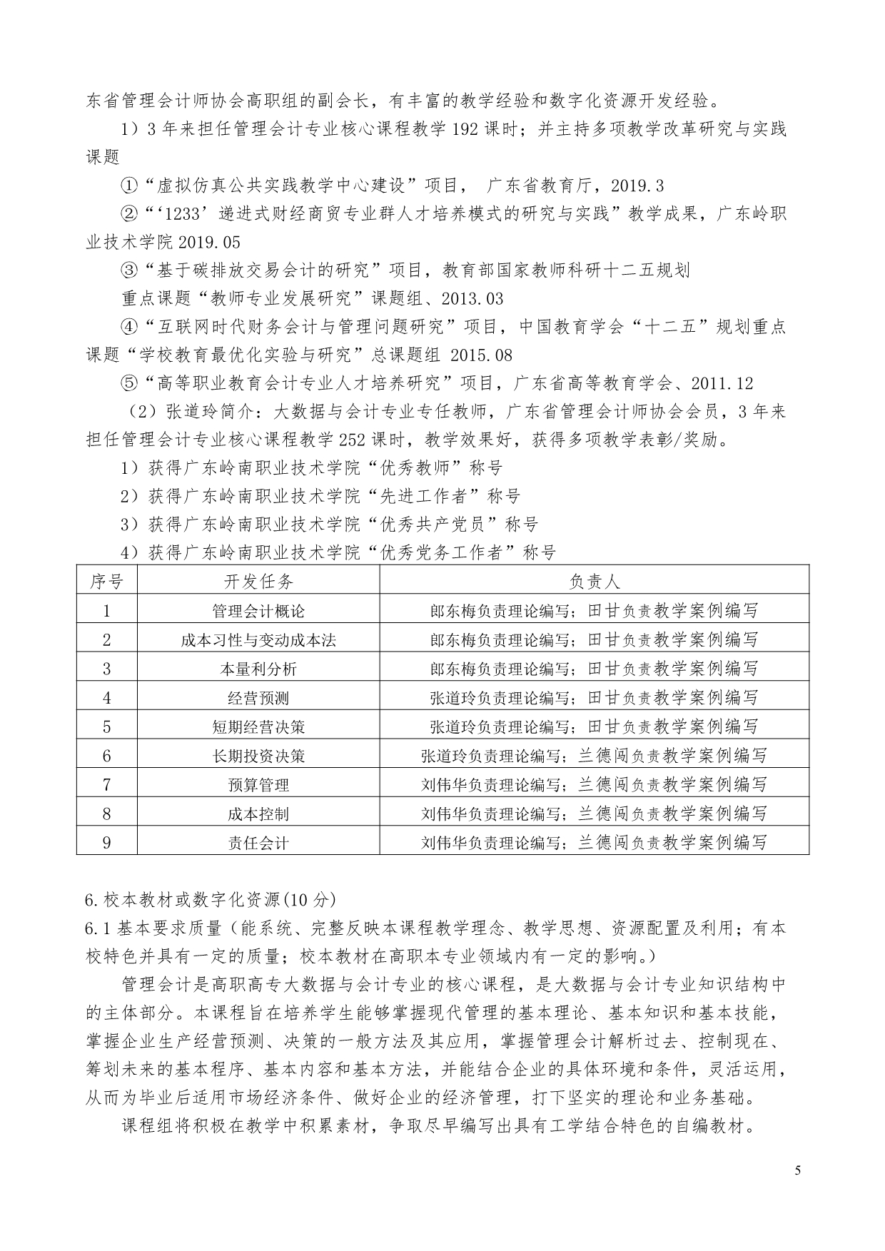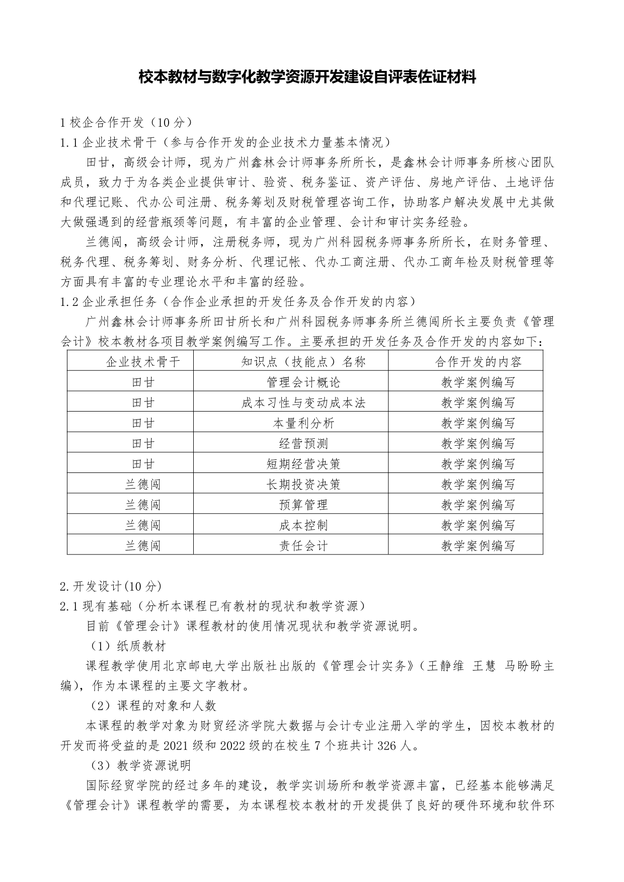 5-《管理会计》校本教材开发建设自评表佐证材料(刘伟华)