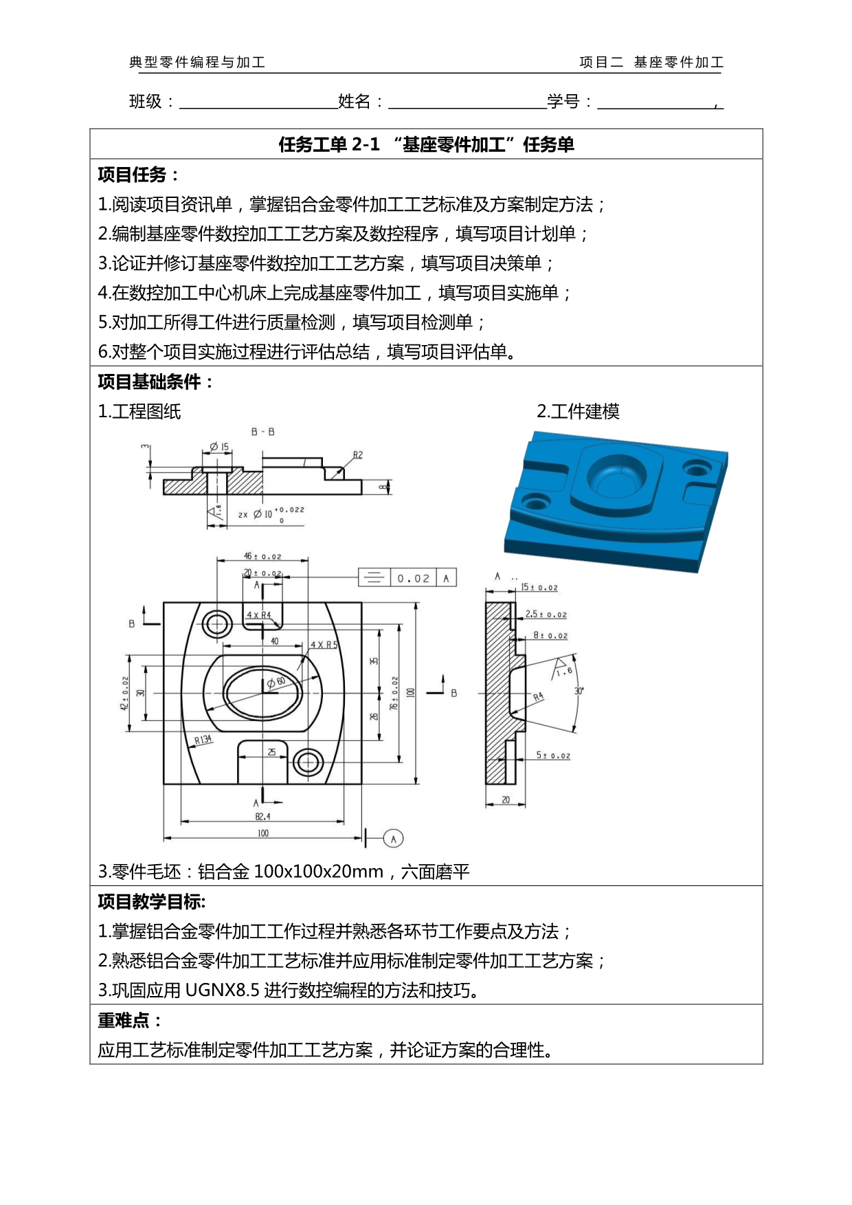 3.3《典型零件编程与加工工作手册式教材》之项目2教程“基座零件加工”(教材)(叶立清)