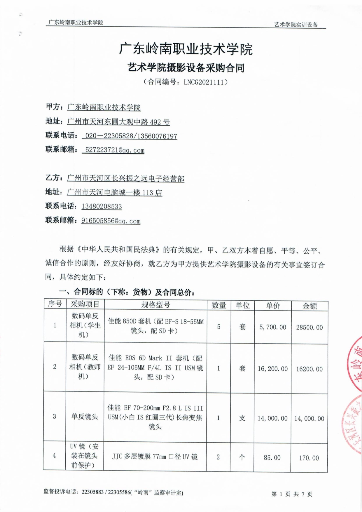 11-艺术学院摄影设备采购合同LNCG2021111(13)