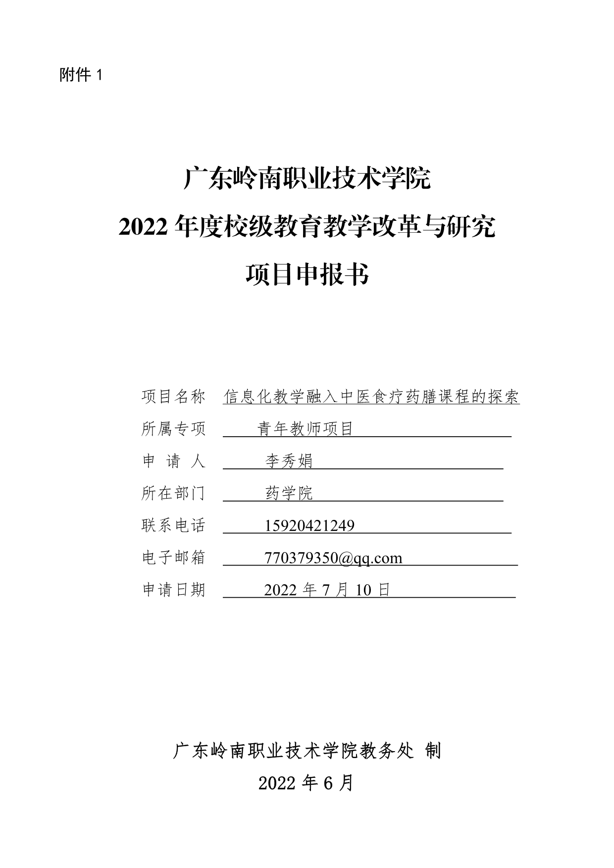 1. 2022年度校级教育教学改革与研究项目申报书(詹丽群)