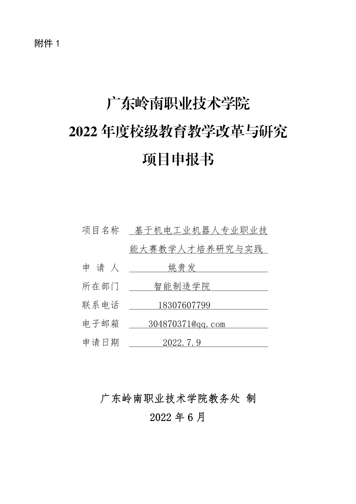 20. 2022年度校级教育教学改革与研究项目申报书(姚贵发)