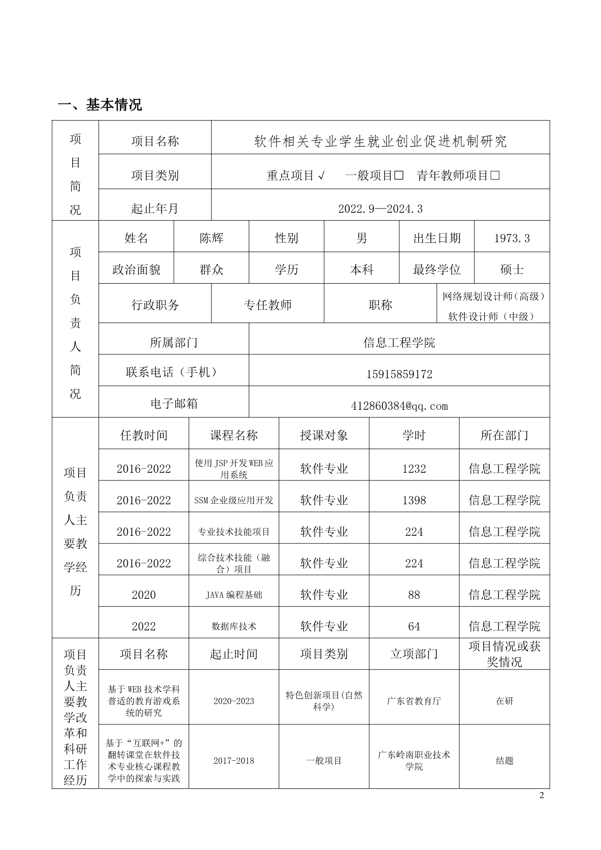 27. 2022年度校级教育教学改革与研究项目申报书(陈辉)