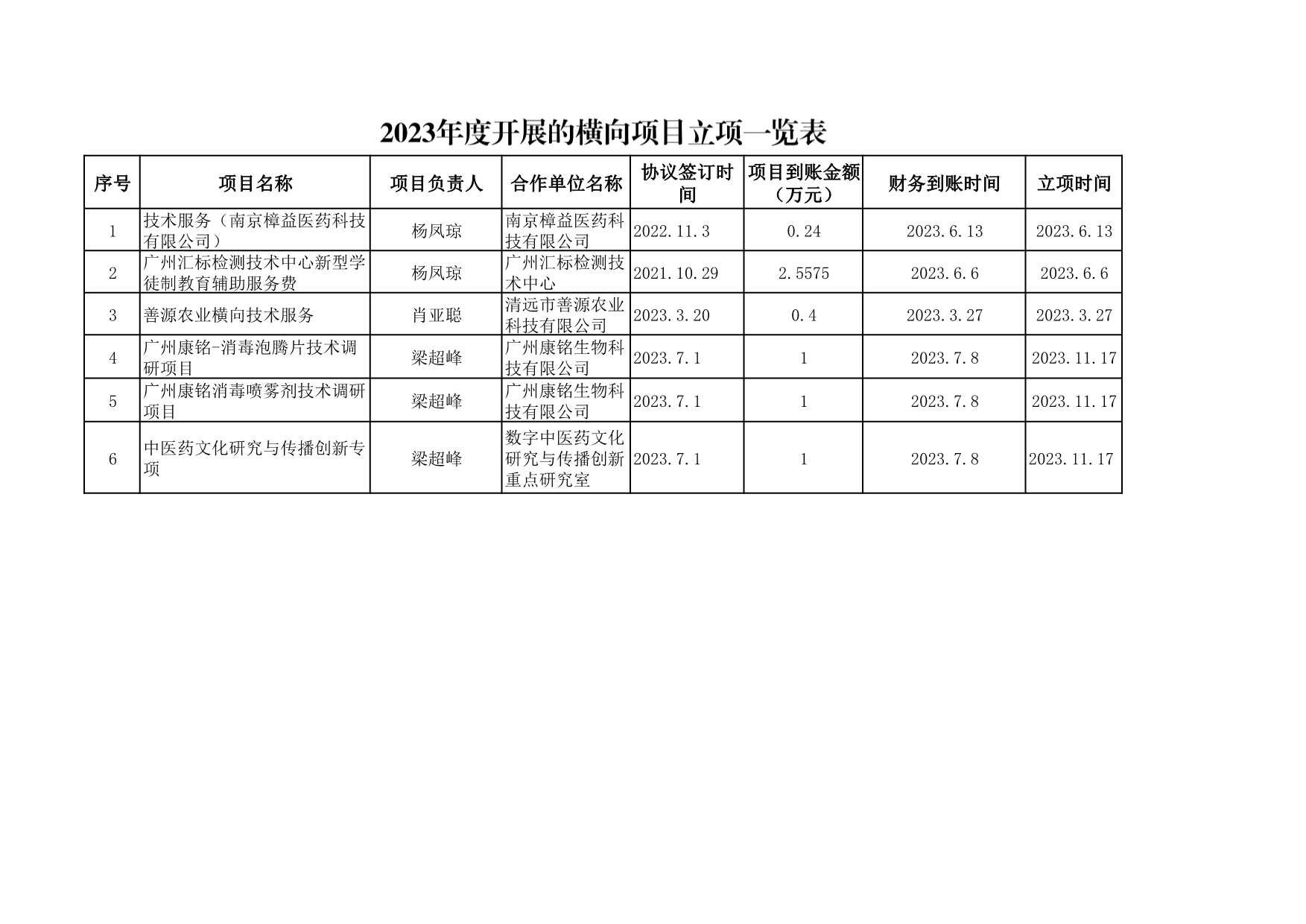 7-3-1 2023年度开展的横向项目立项一览表
