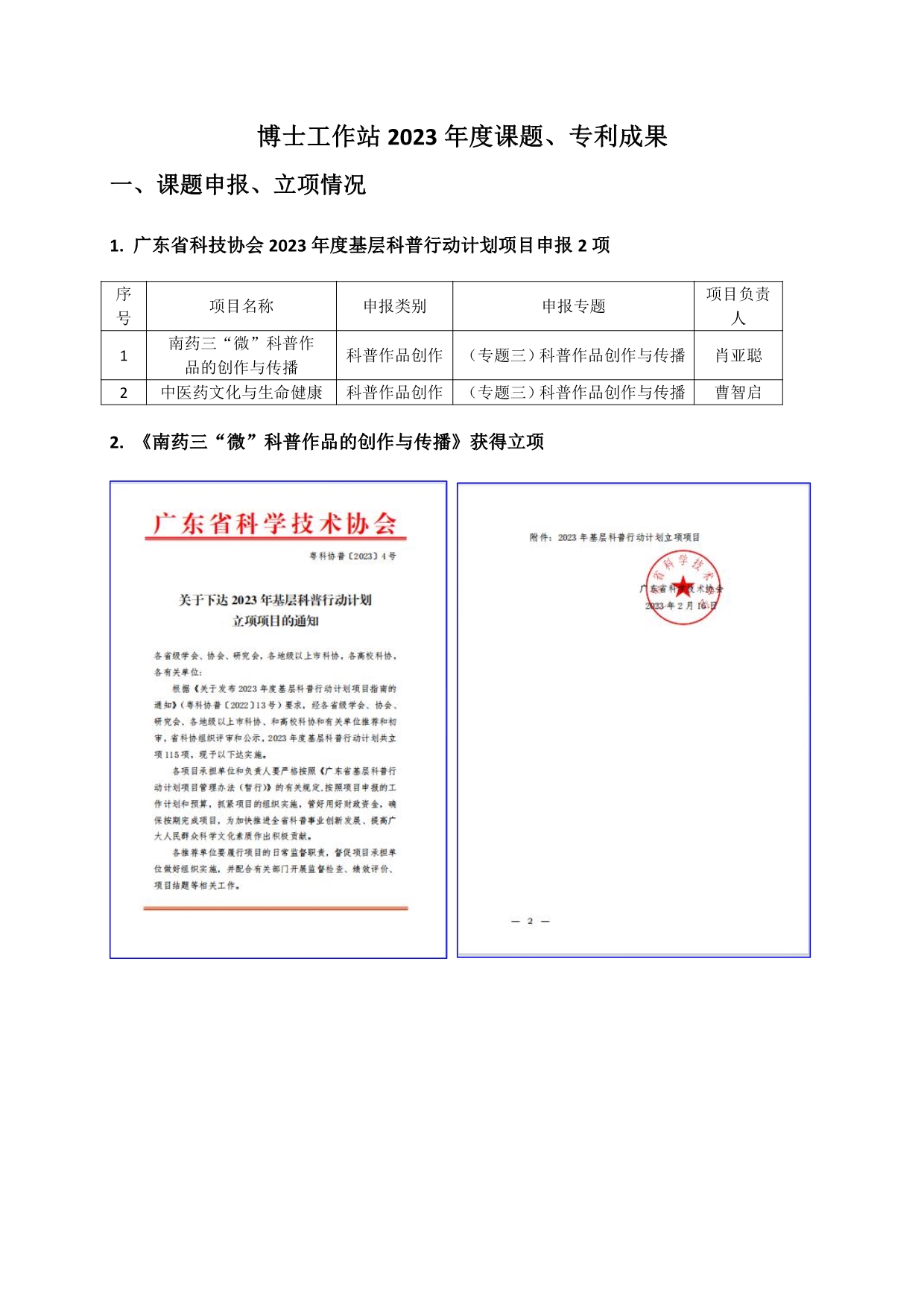 37.博士工作站2023年度课题、专利成果