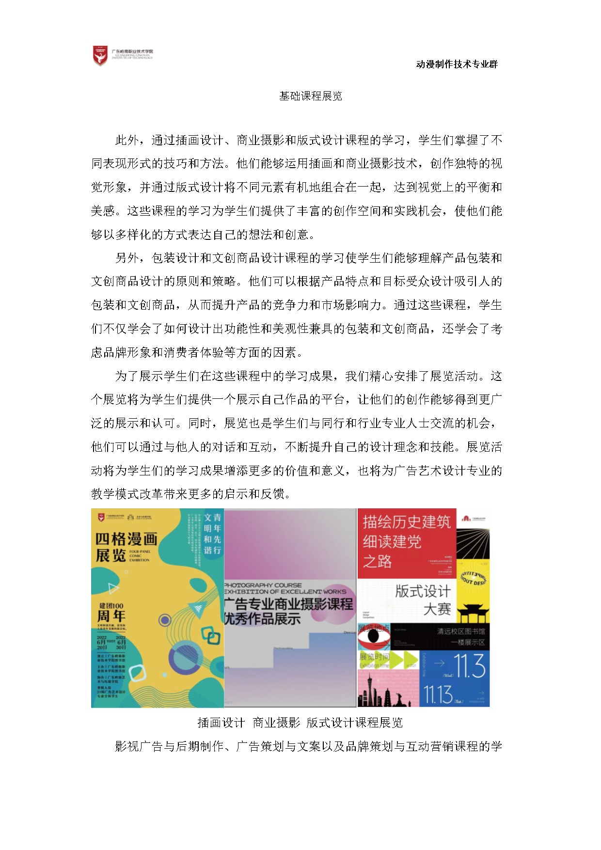1-4-3建设4门创新创业教育课程:《插漫画绘制》《后期制作》《创意思维与创新实践(含前沿技术)》《影视鉴赏与分析》