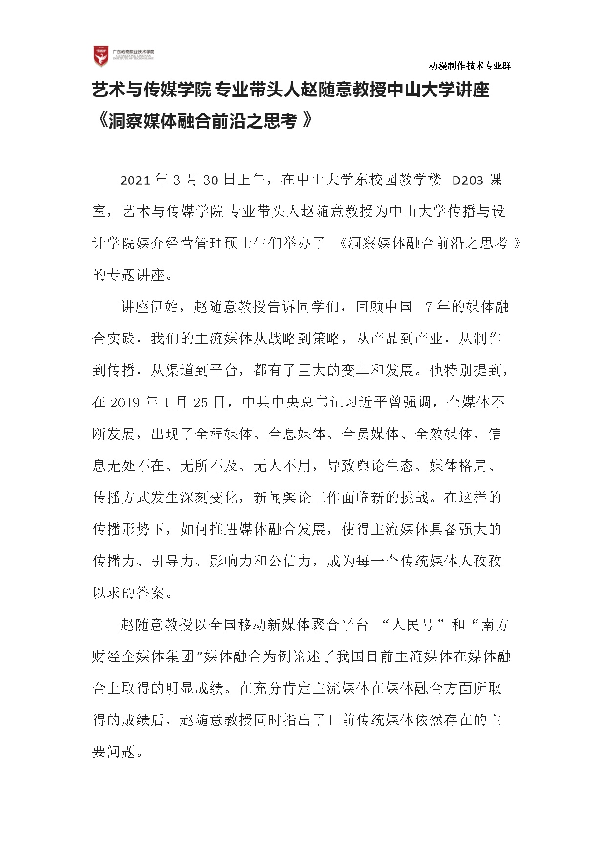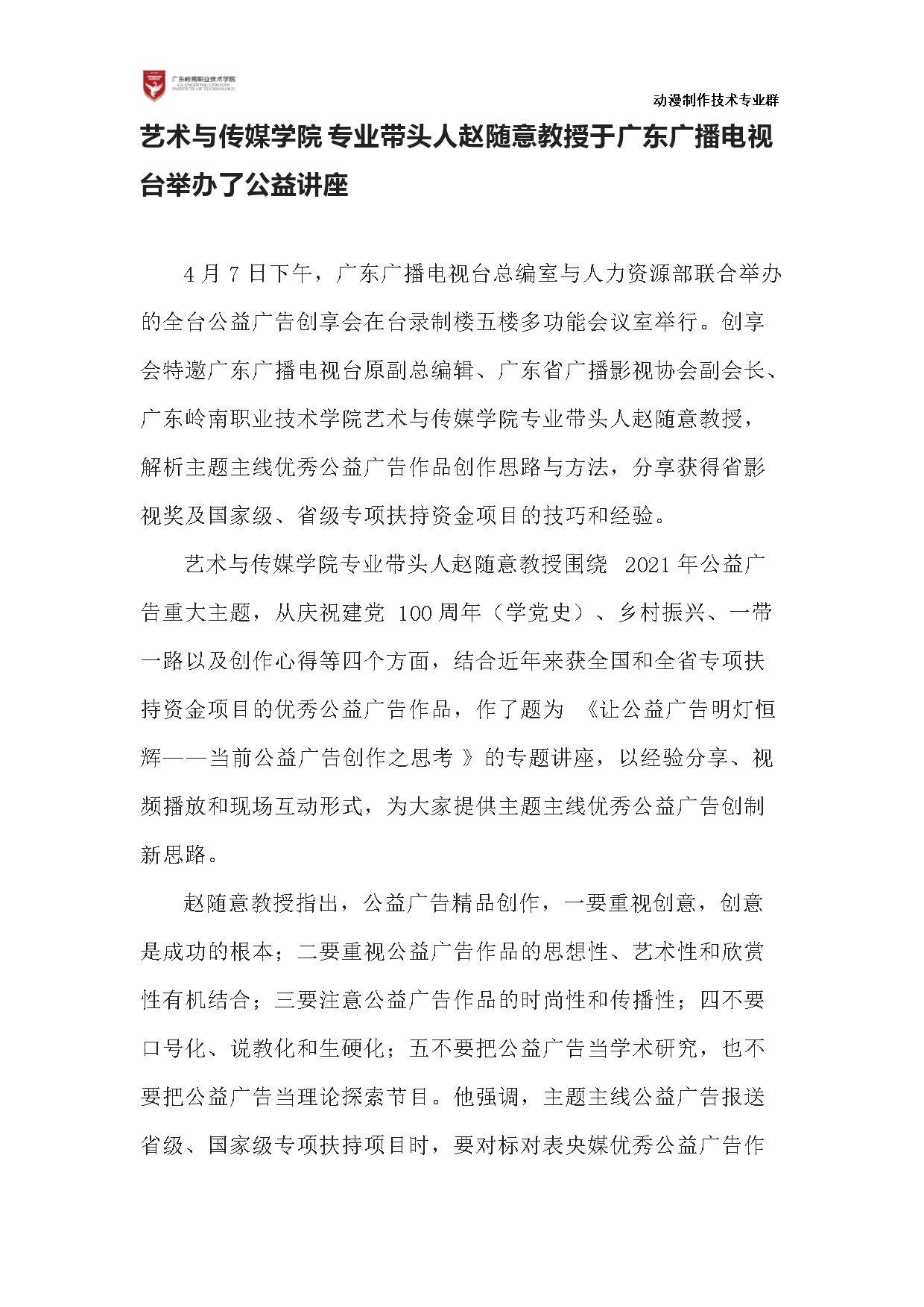4-1-2-4学术讲座-专业带头人赵随意教授于广东广播电视台举办了公益讲座学术讲座