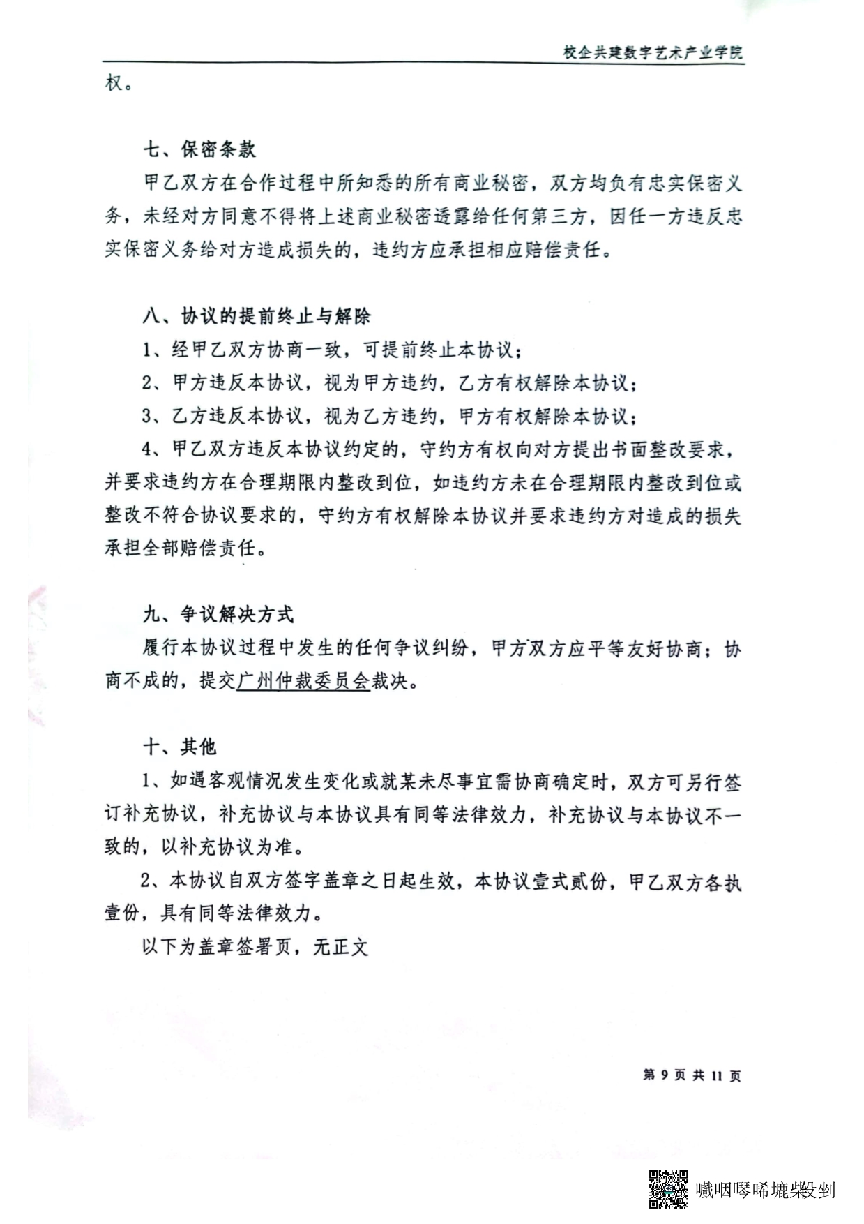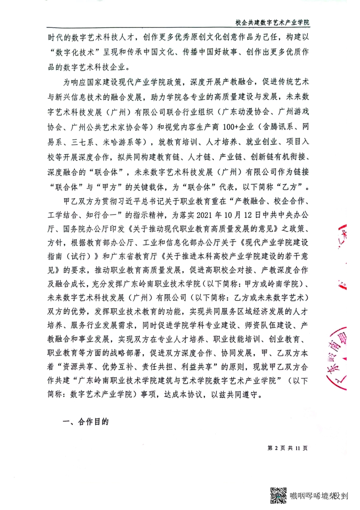 5-2-3数字艺术产业学院协议书(2022年商定2023年签约)