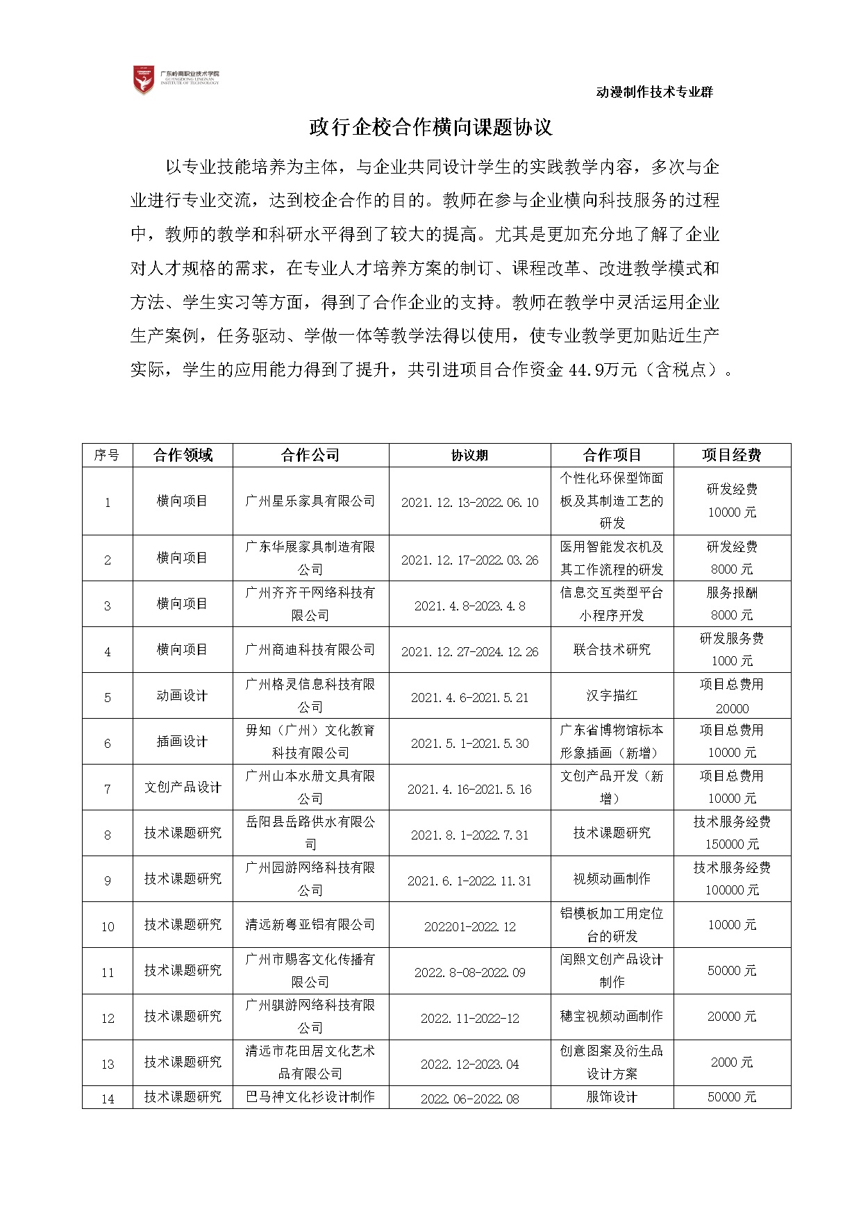 3.4.2横向技术服务项目14项