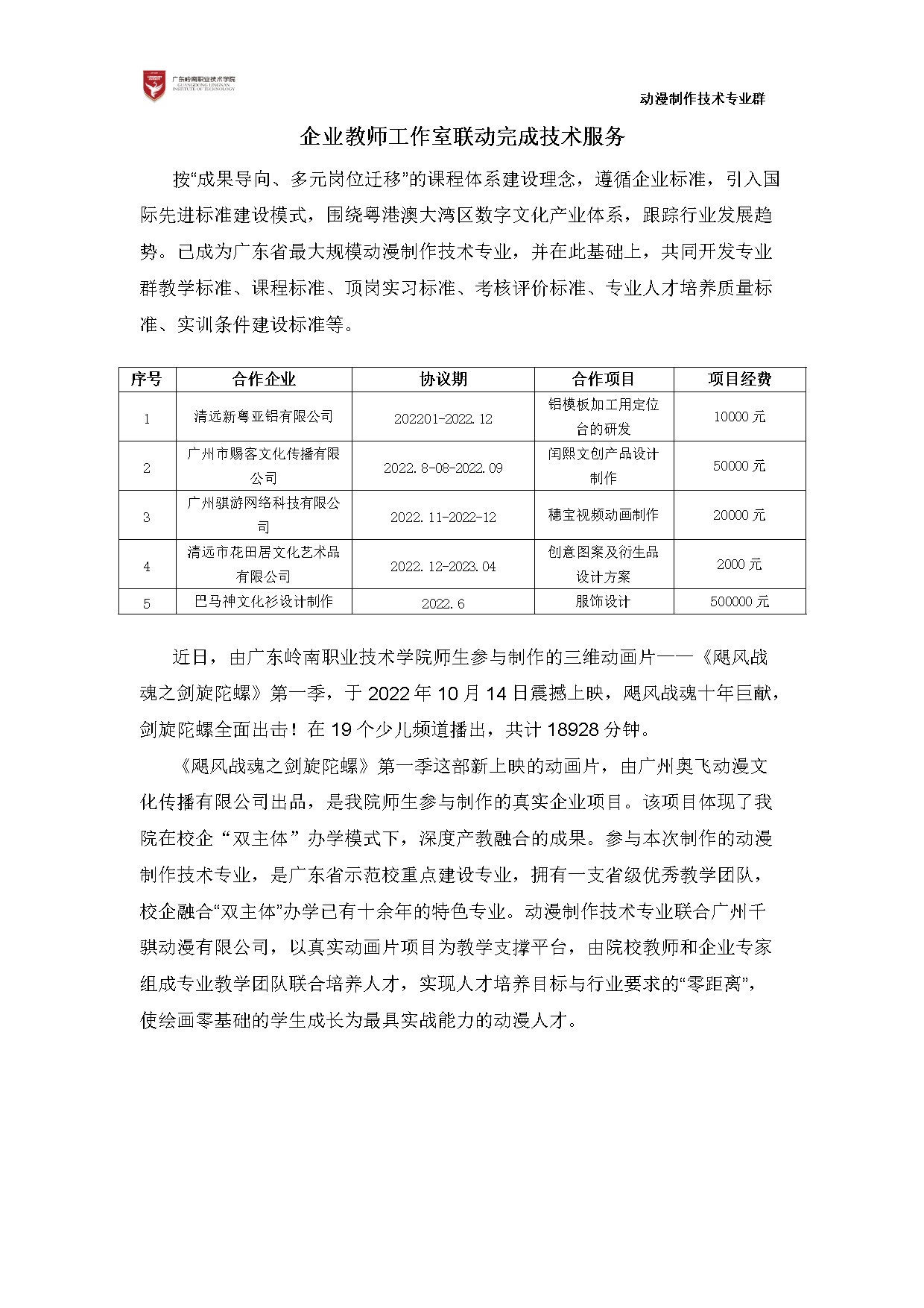 2022年动漫制作技术专业群经费支出明细表