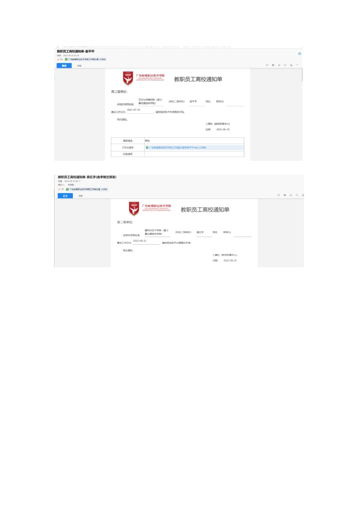 专业群人员变动佐证材料