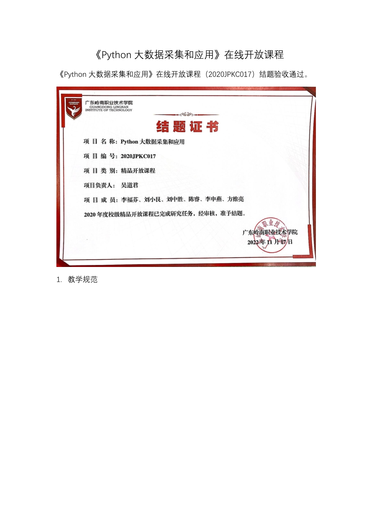 1、人才培养工作