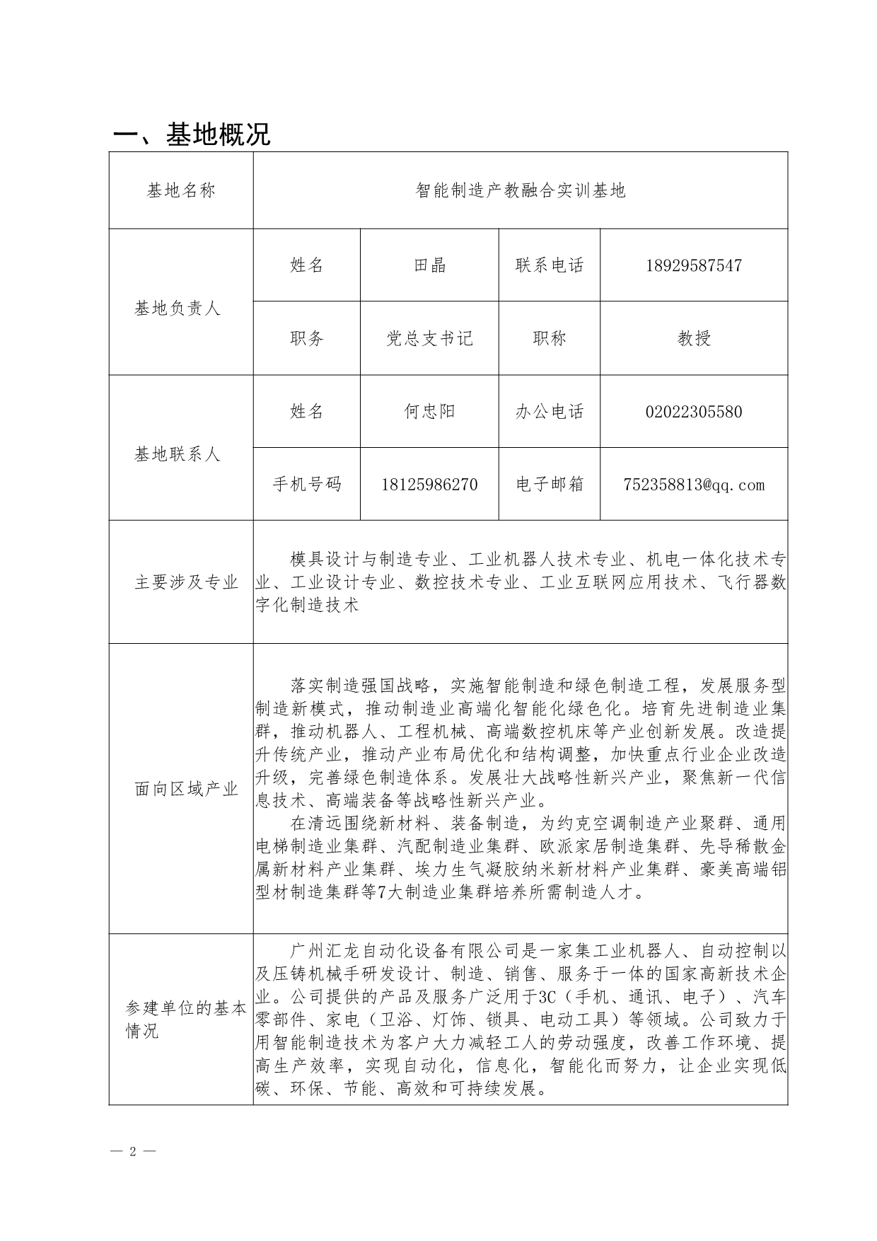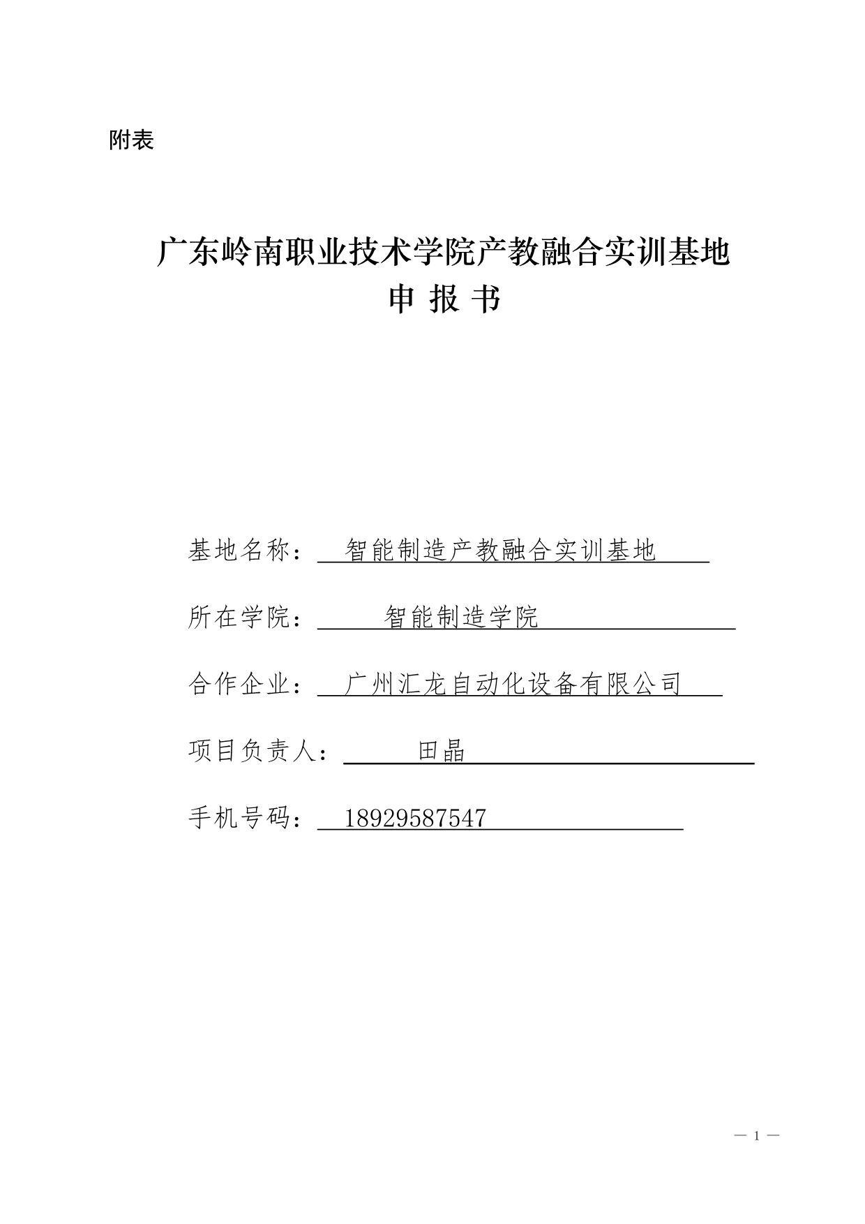 1.《智能制造产教融合实训基地》产教融合实训基地申报书+田晶