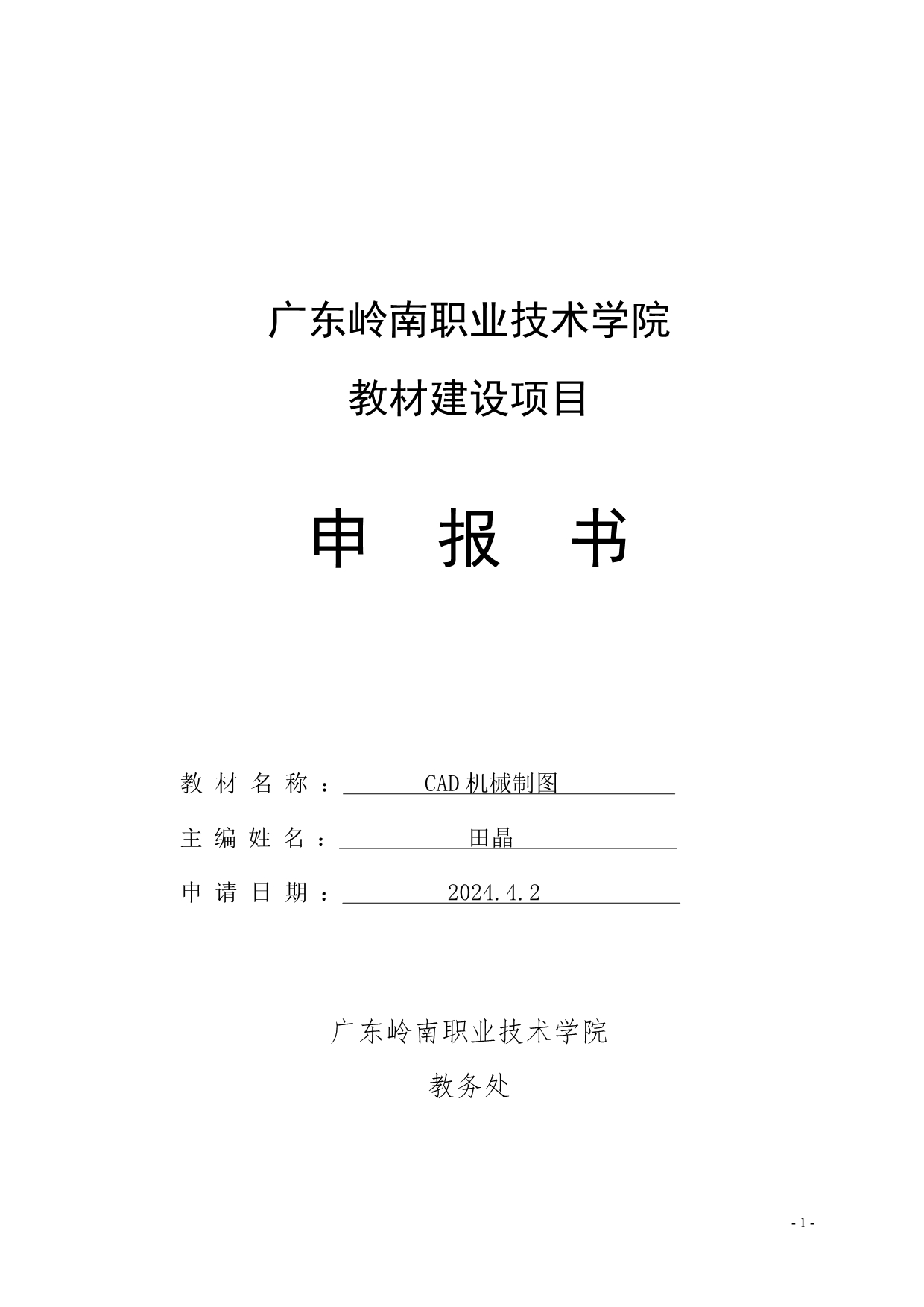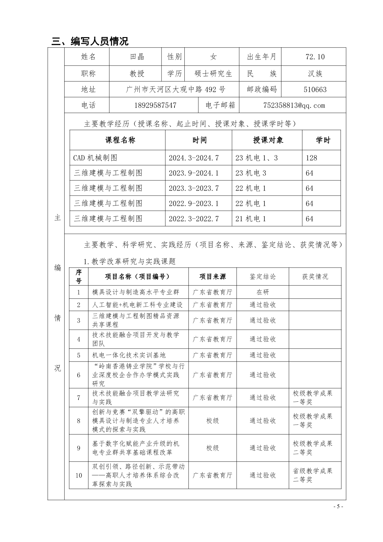 5.《CAD机械制图》校本教材建设申报书+田晶