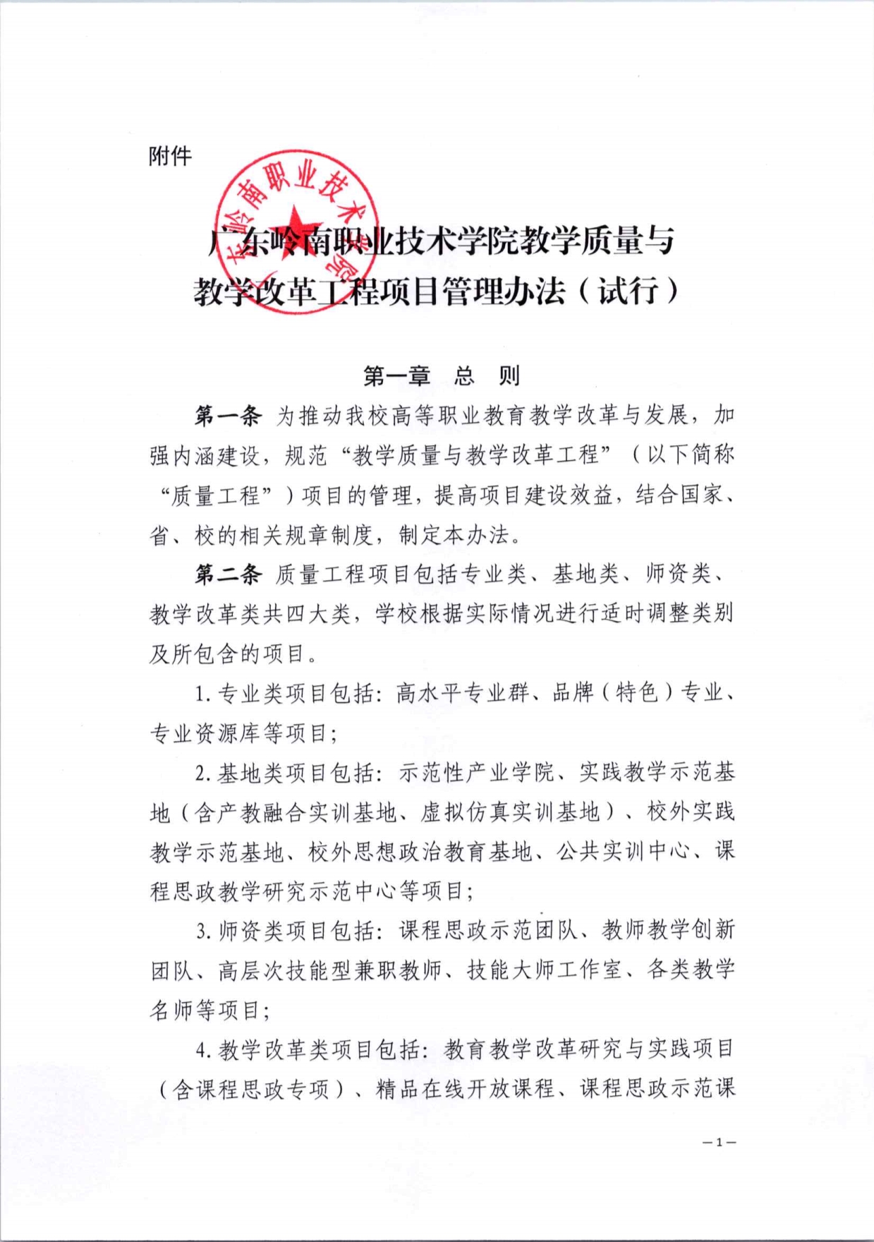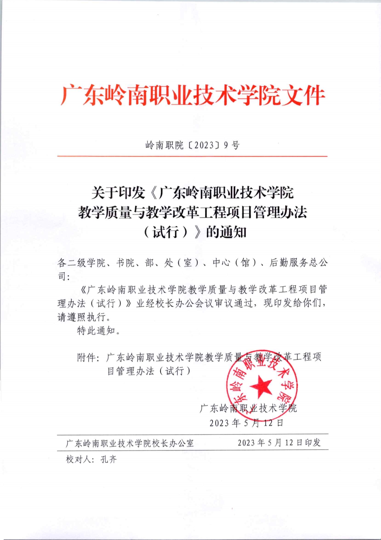 岭南职院[2023]9号p关于印发《广东岭南职业技术学院教学质量与教学改革工程项目管理办法(试行)》的通知
