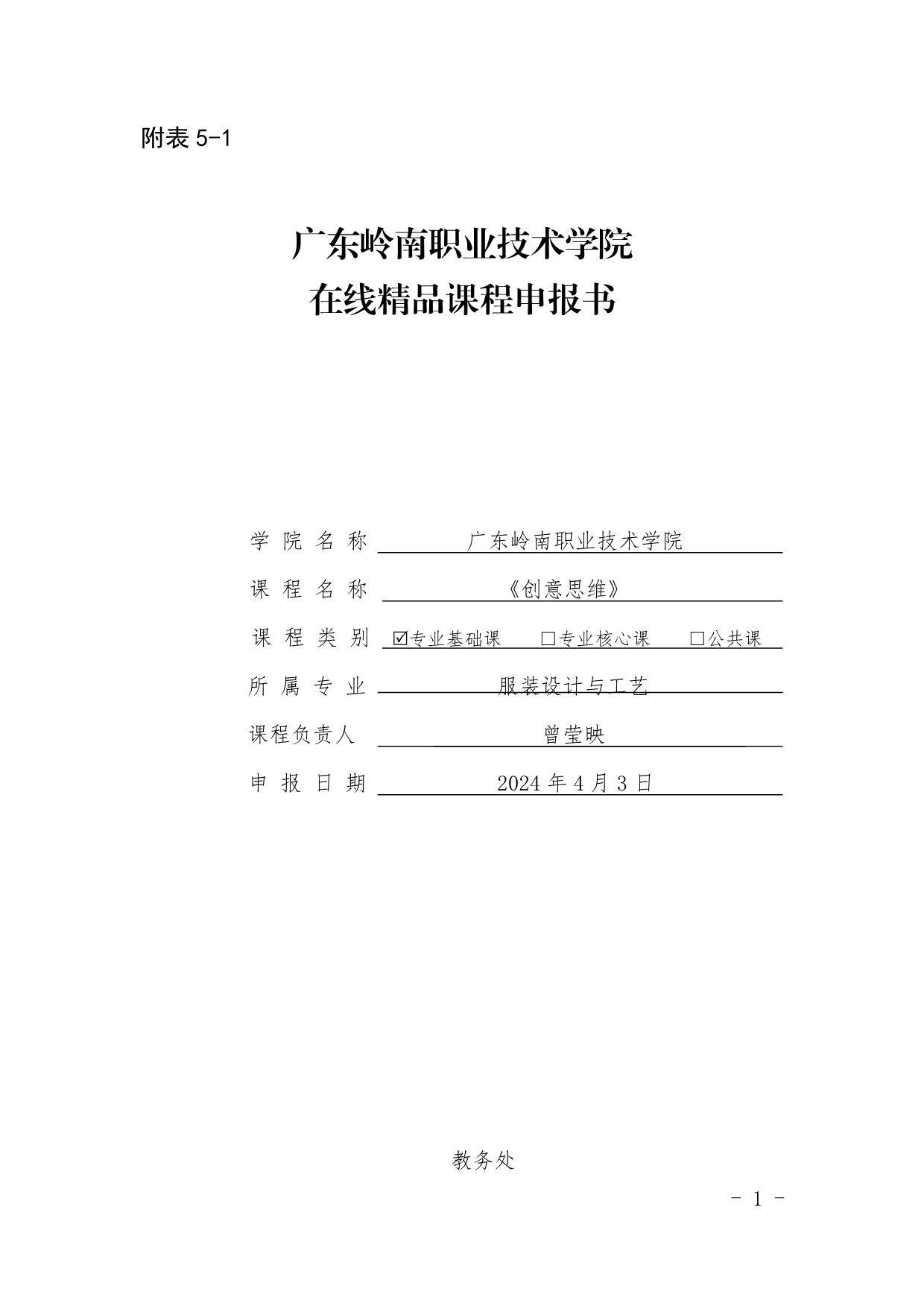 14.《创意思维》在线精品课程申报书+曾莹映