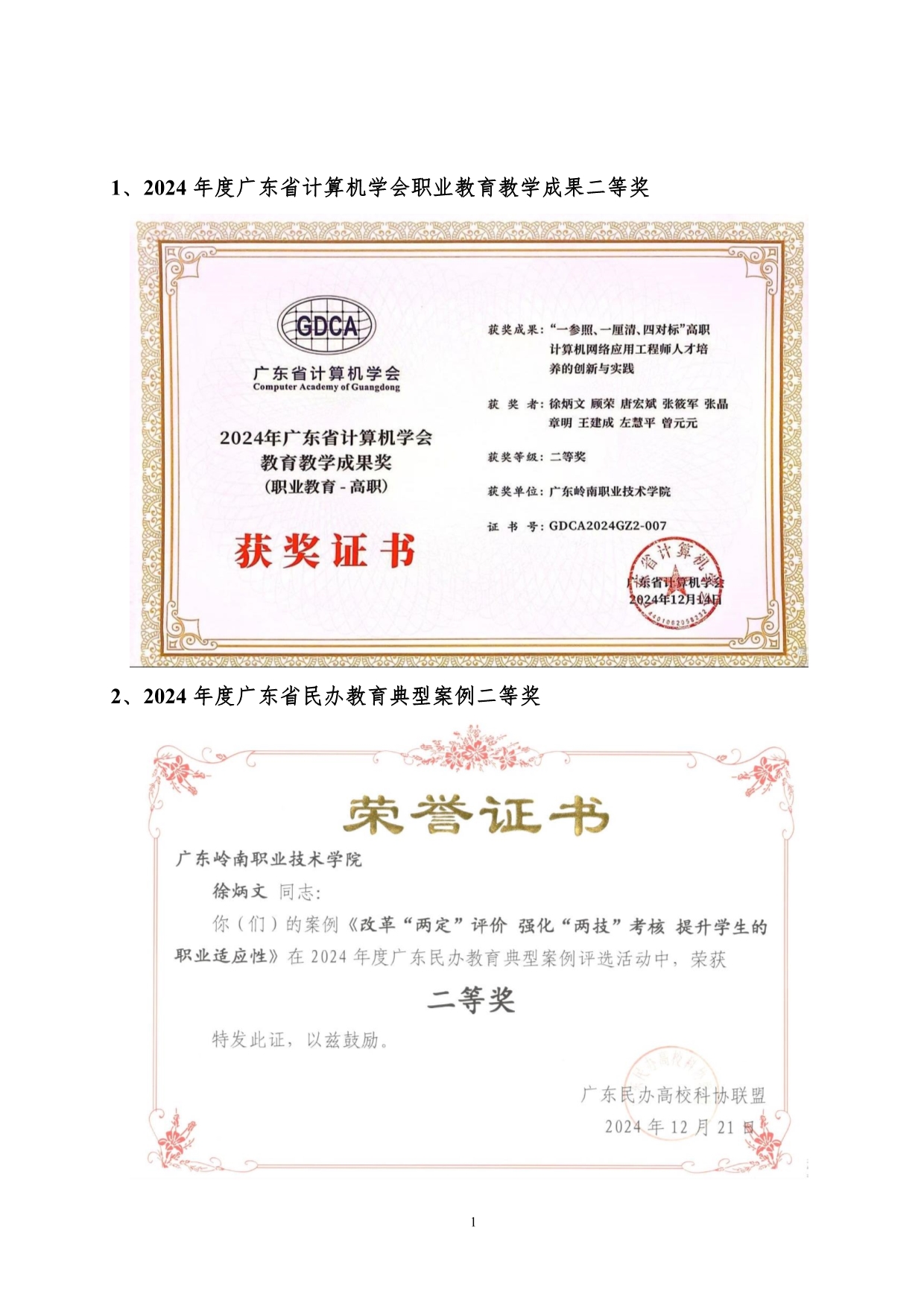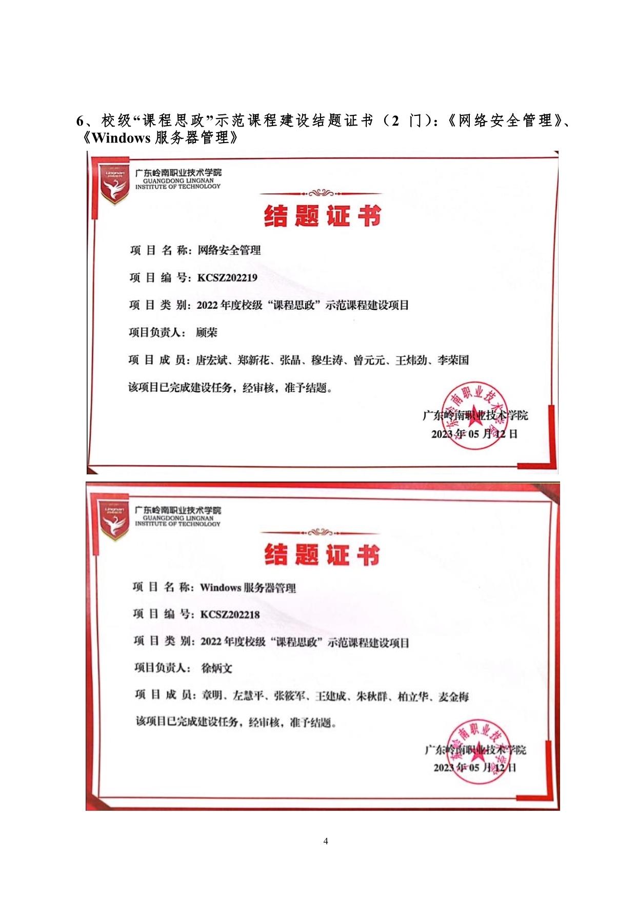 4.《“一参照、一厘清、四对标”高职计算机网络应用工程师人才培养的创新与实践》成果佐证材料+徐炳文