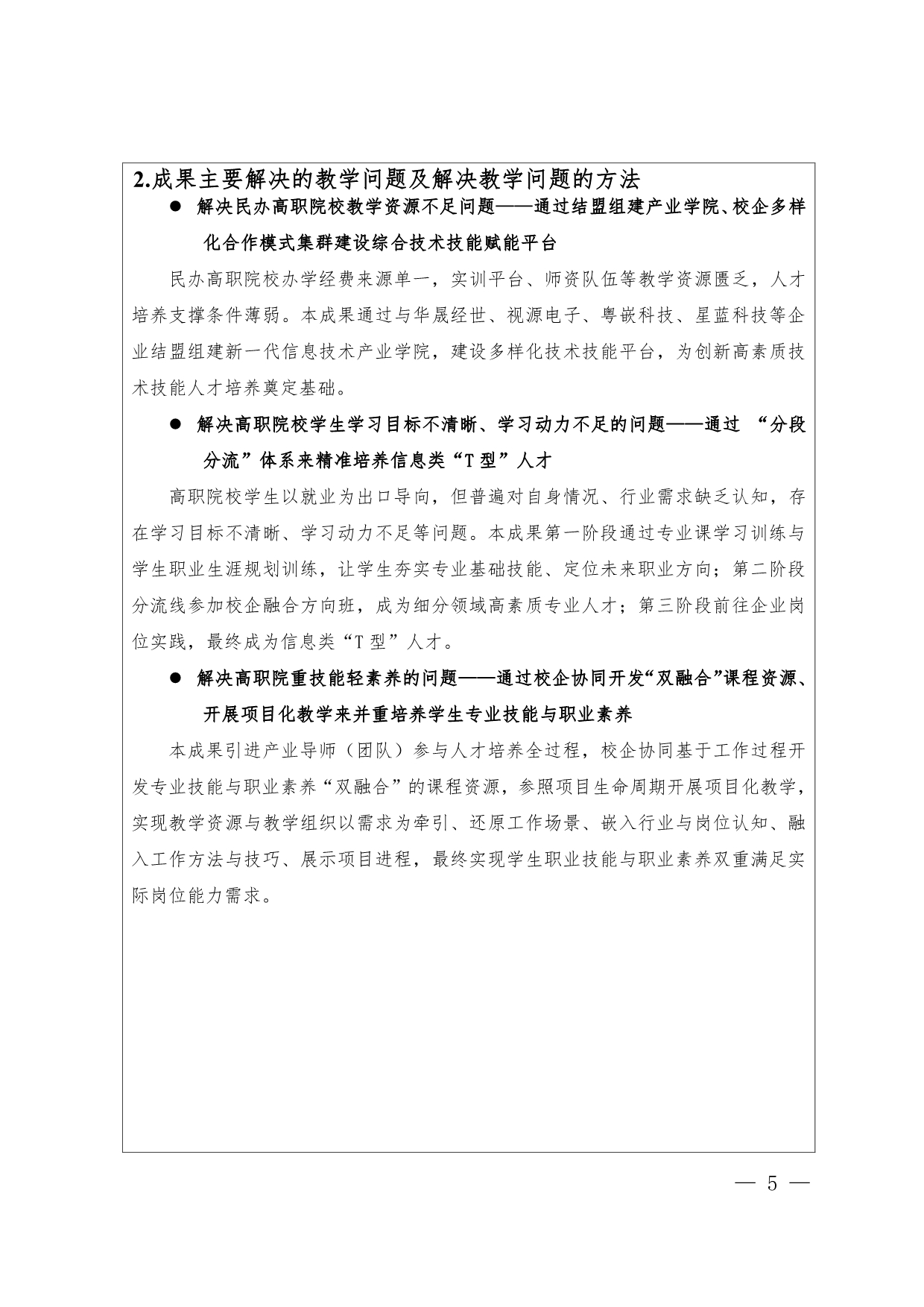 2.《校企协同、分段分流:面向中小微企业培养信息类“T 型”人才的创新与实践》成果总结报告+佘学文