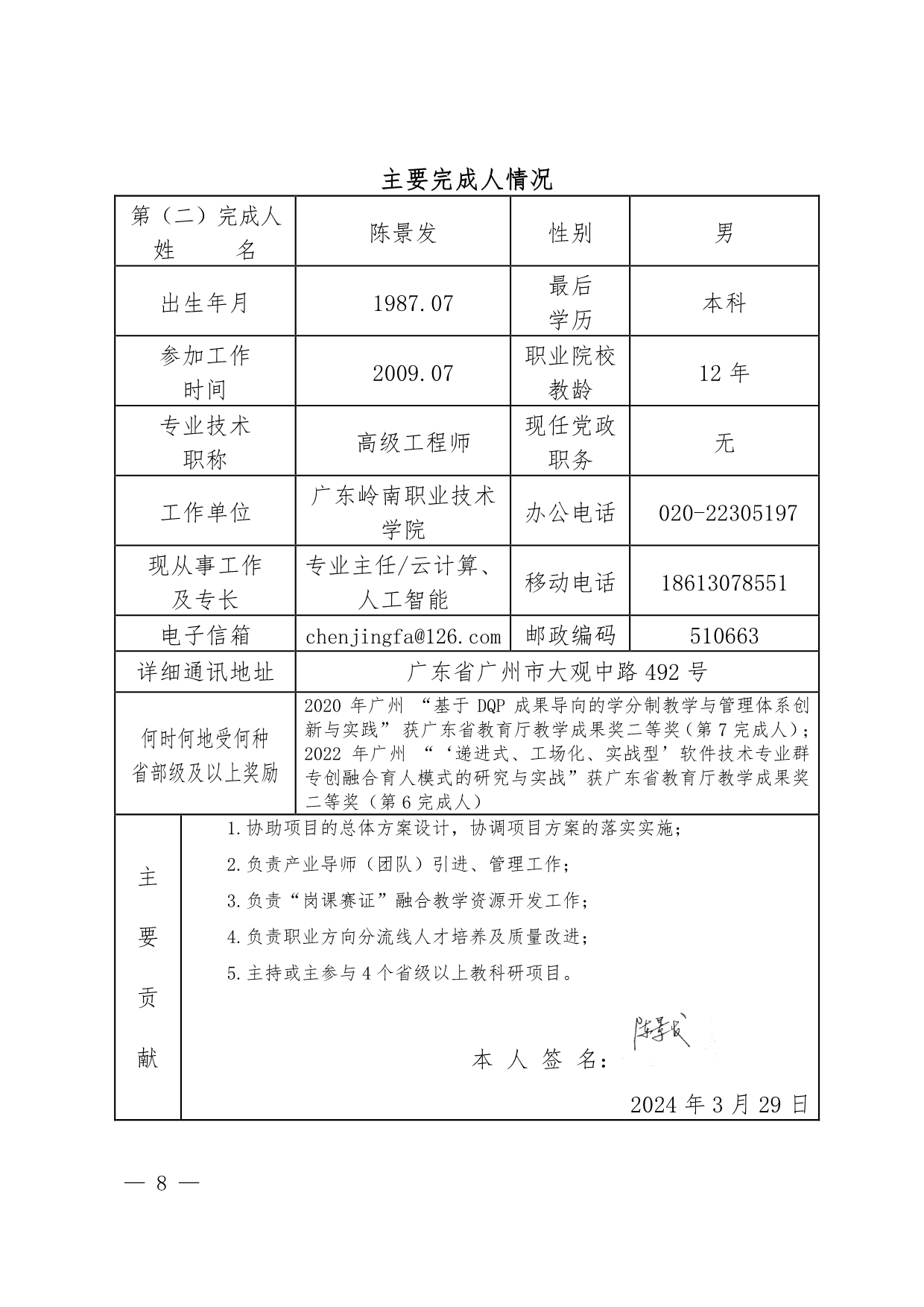 7.《高技能人才培养视域下基于真实项目和工作过程的高职数控专业课程改革与实践》教学成果奖材料+叶立清