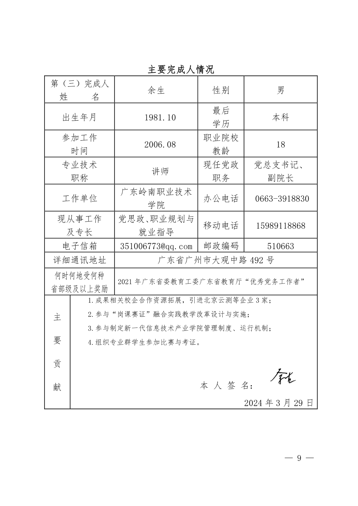 2.《问题导向、团队探究、多维评价:岭南职院颠覆式教学改革的探索与实践》教学成果奖材料+翟树芹