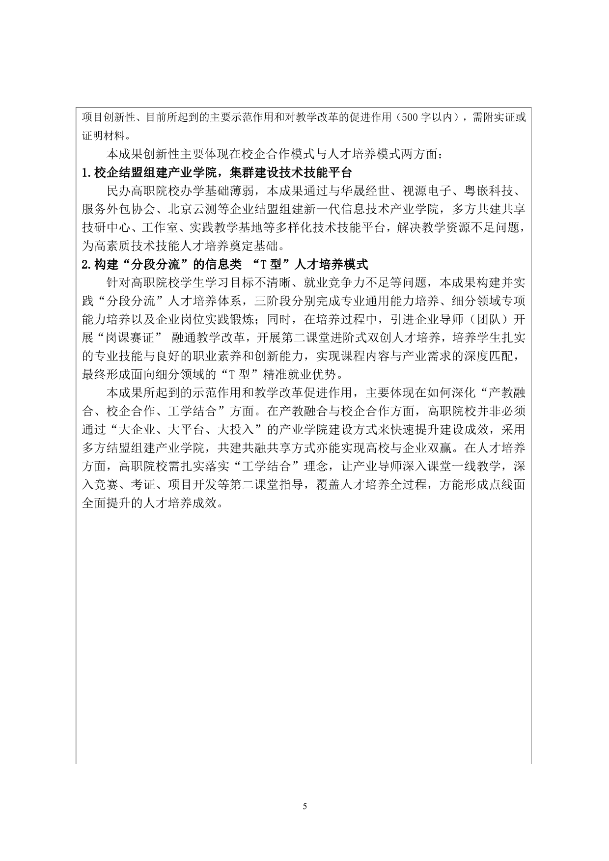 2.《校企协同、分段分流:面向中小微企业培养信息类“T 型”人才的创新与实践》成果总结报告+佘学文