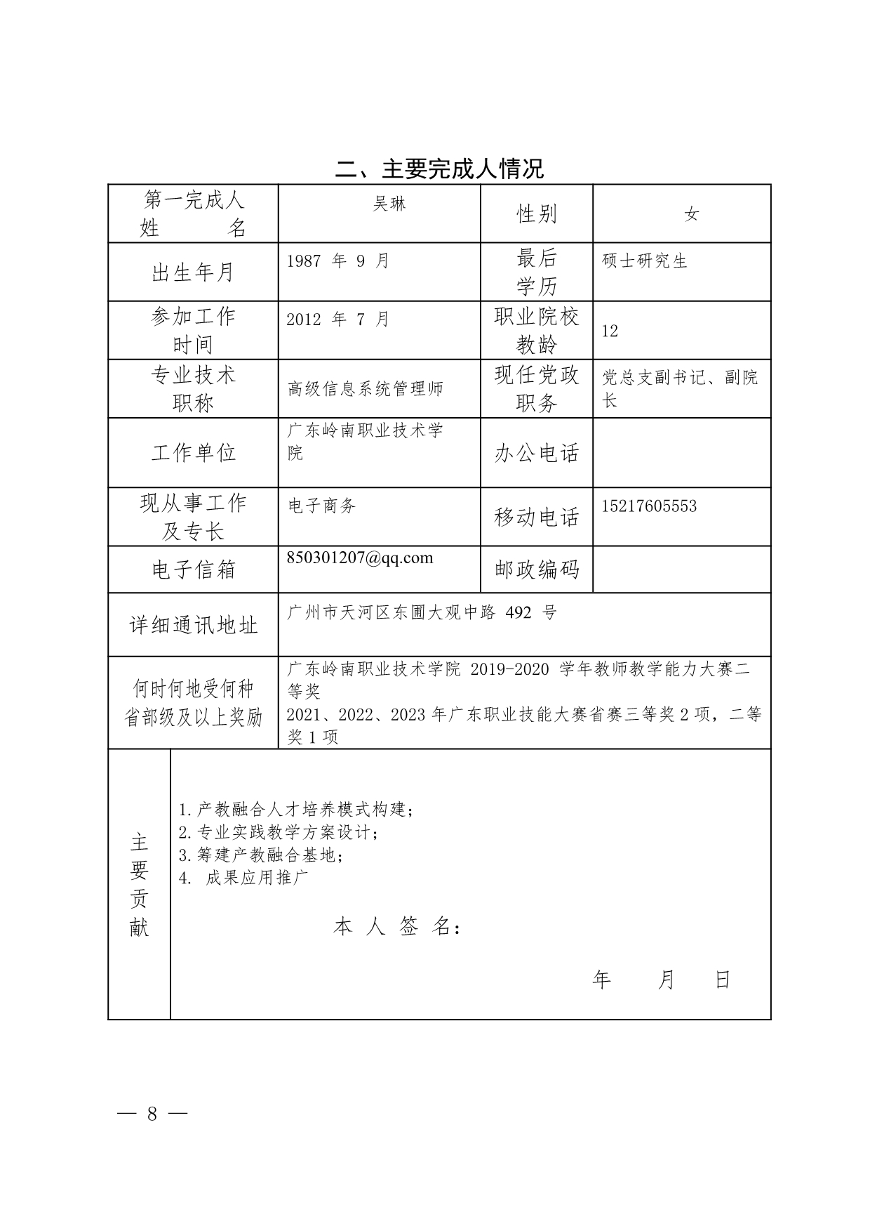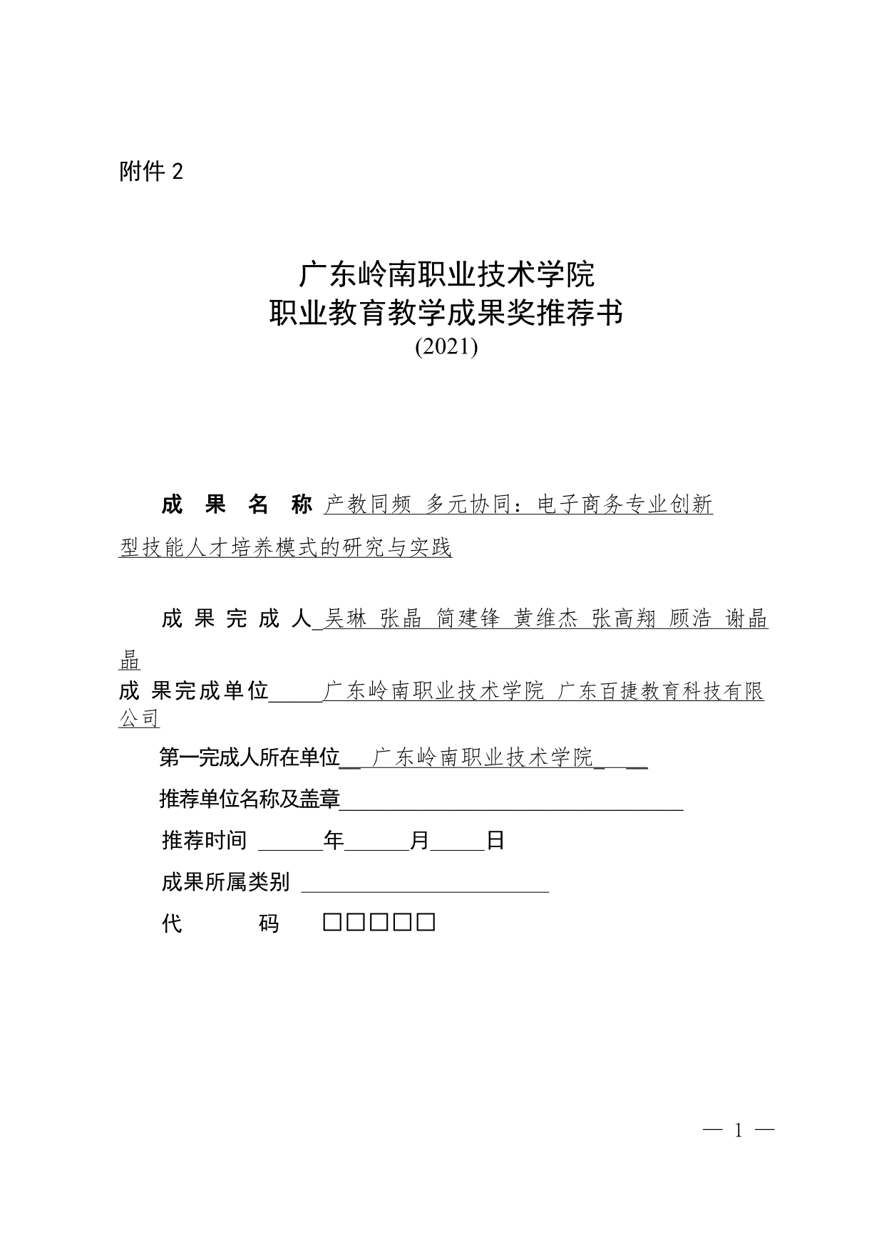1.《产教同频 多元协同:电子商务专业创新型技能人才培养模式的研究与实践》申报书+吴琳