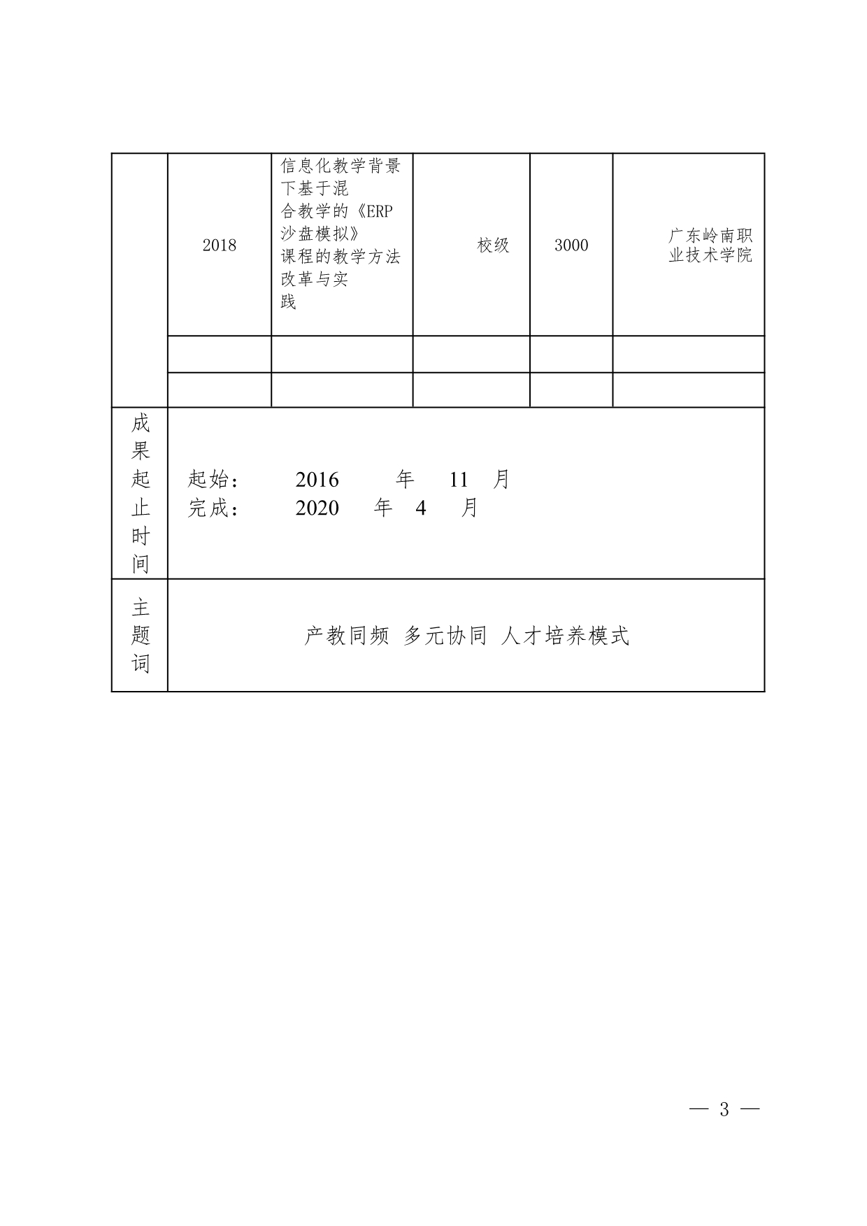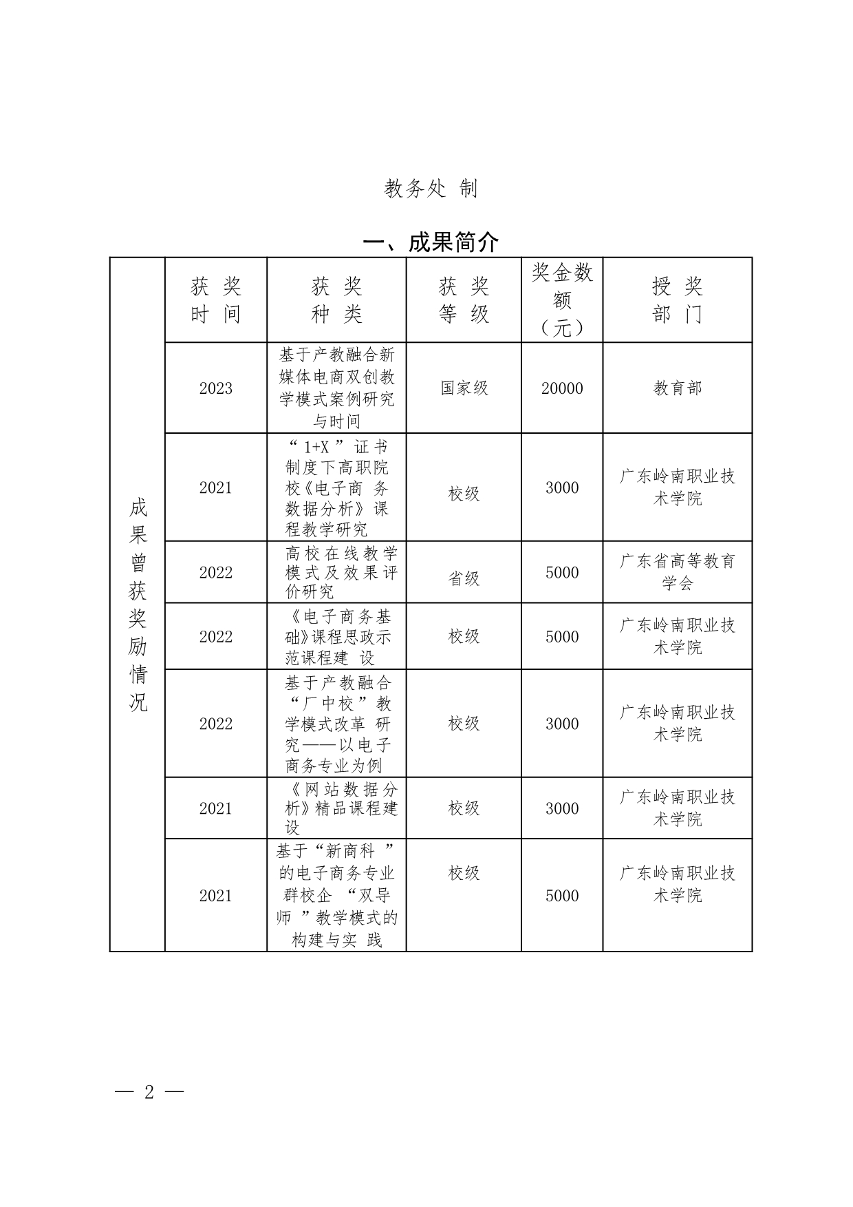 2.《问题导向、团队探究、多维评价:岭南职院颠覆式教学改革的探索与实践》教学成果奖材料+翟树芹
