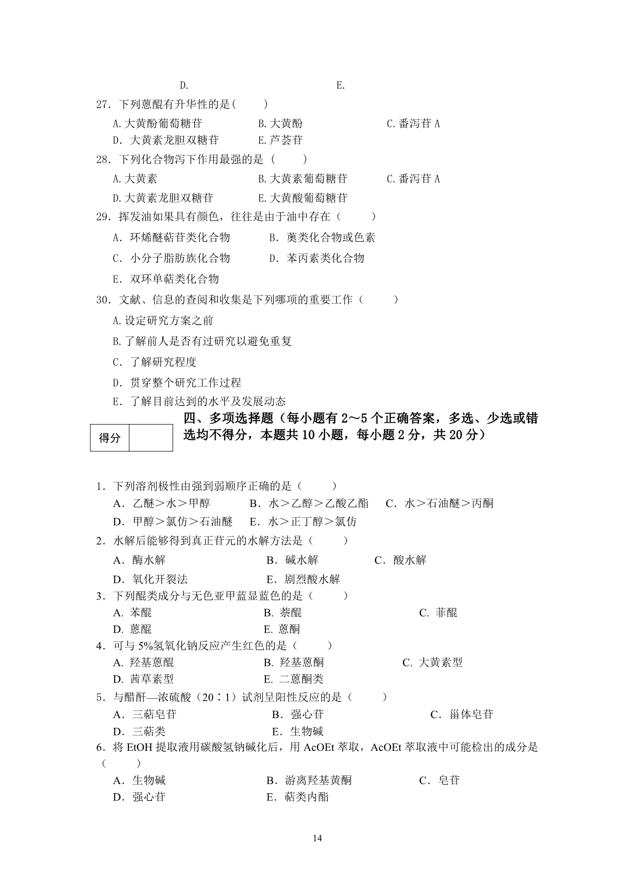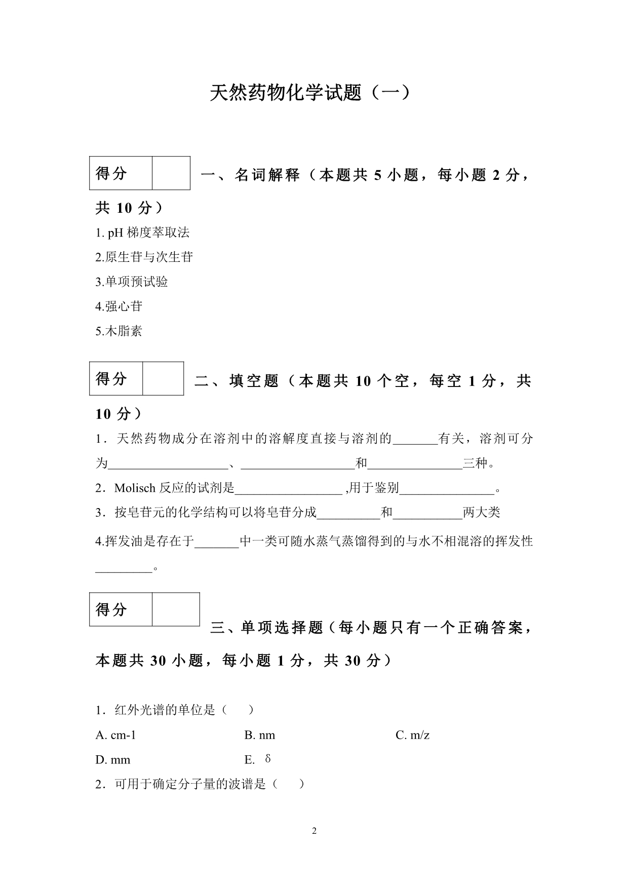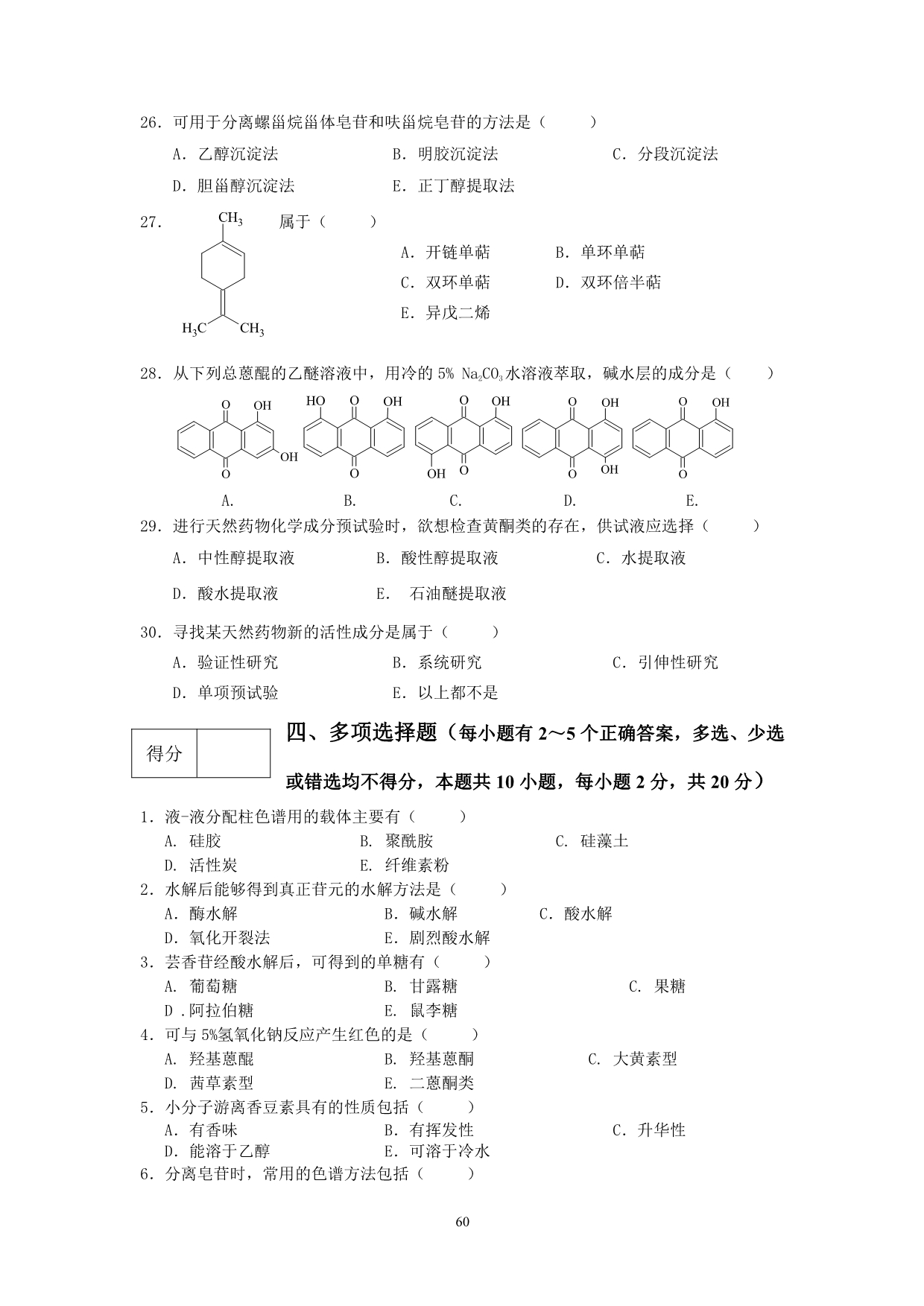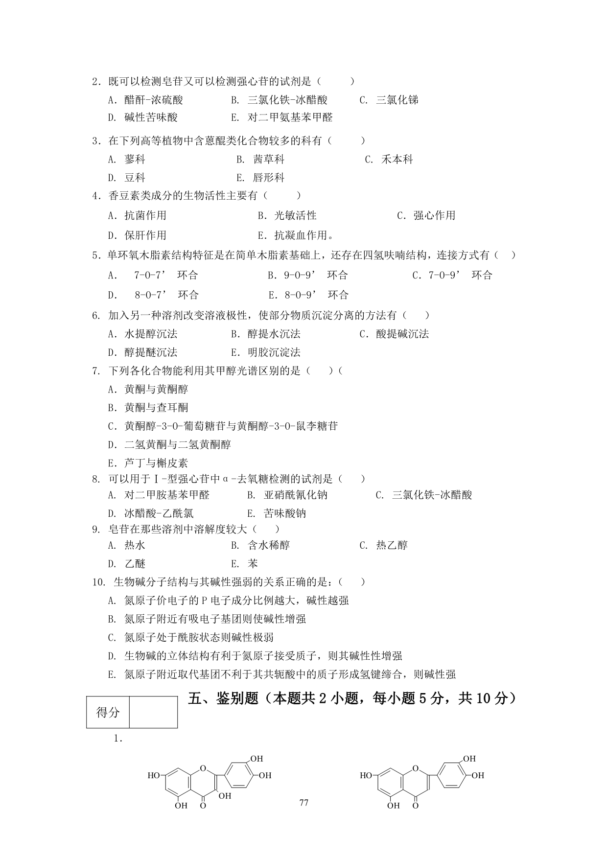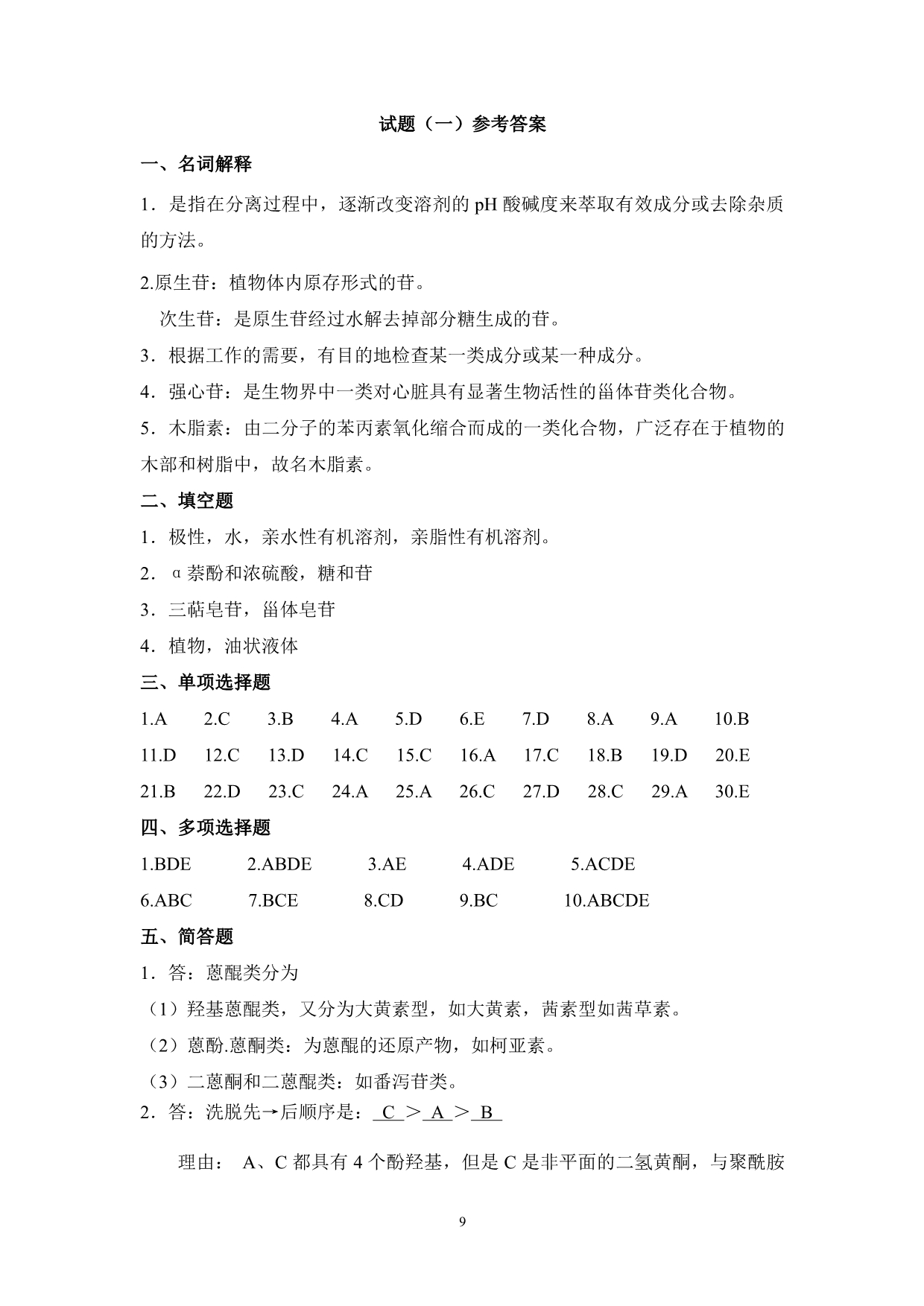 9-1-1 天然药物化学试题库