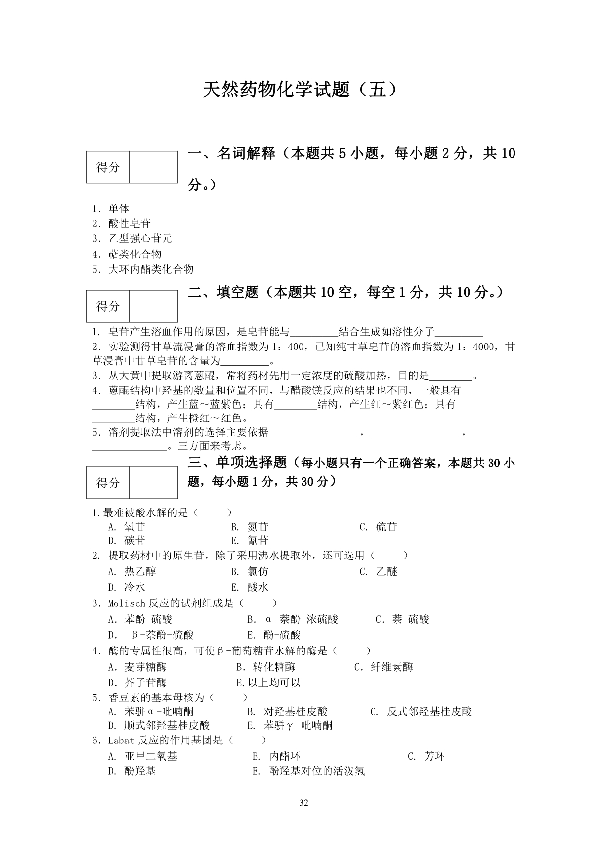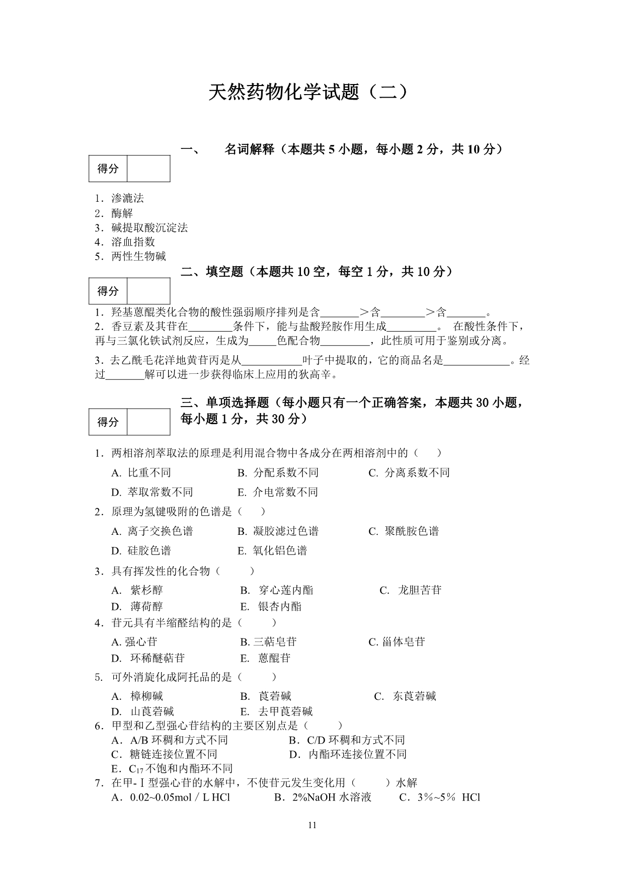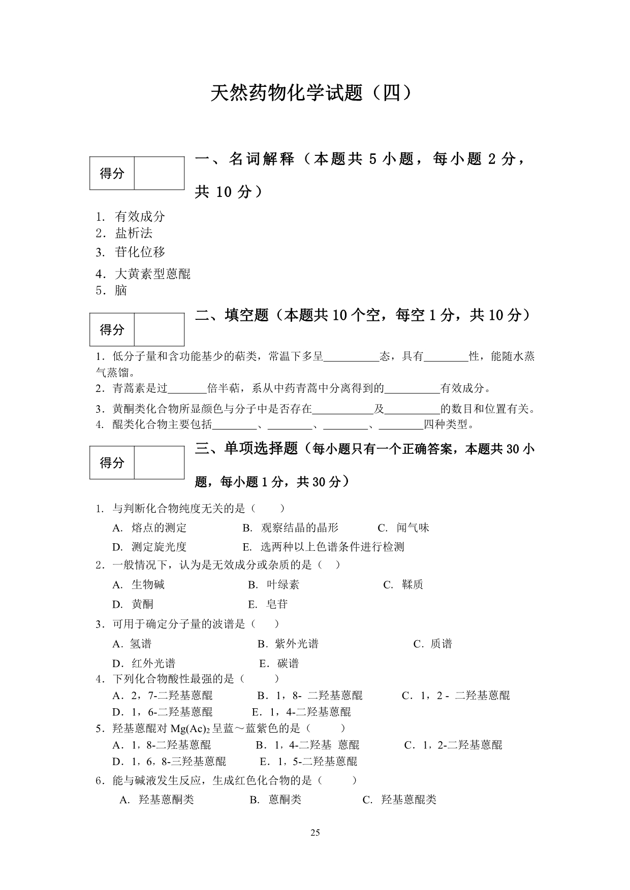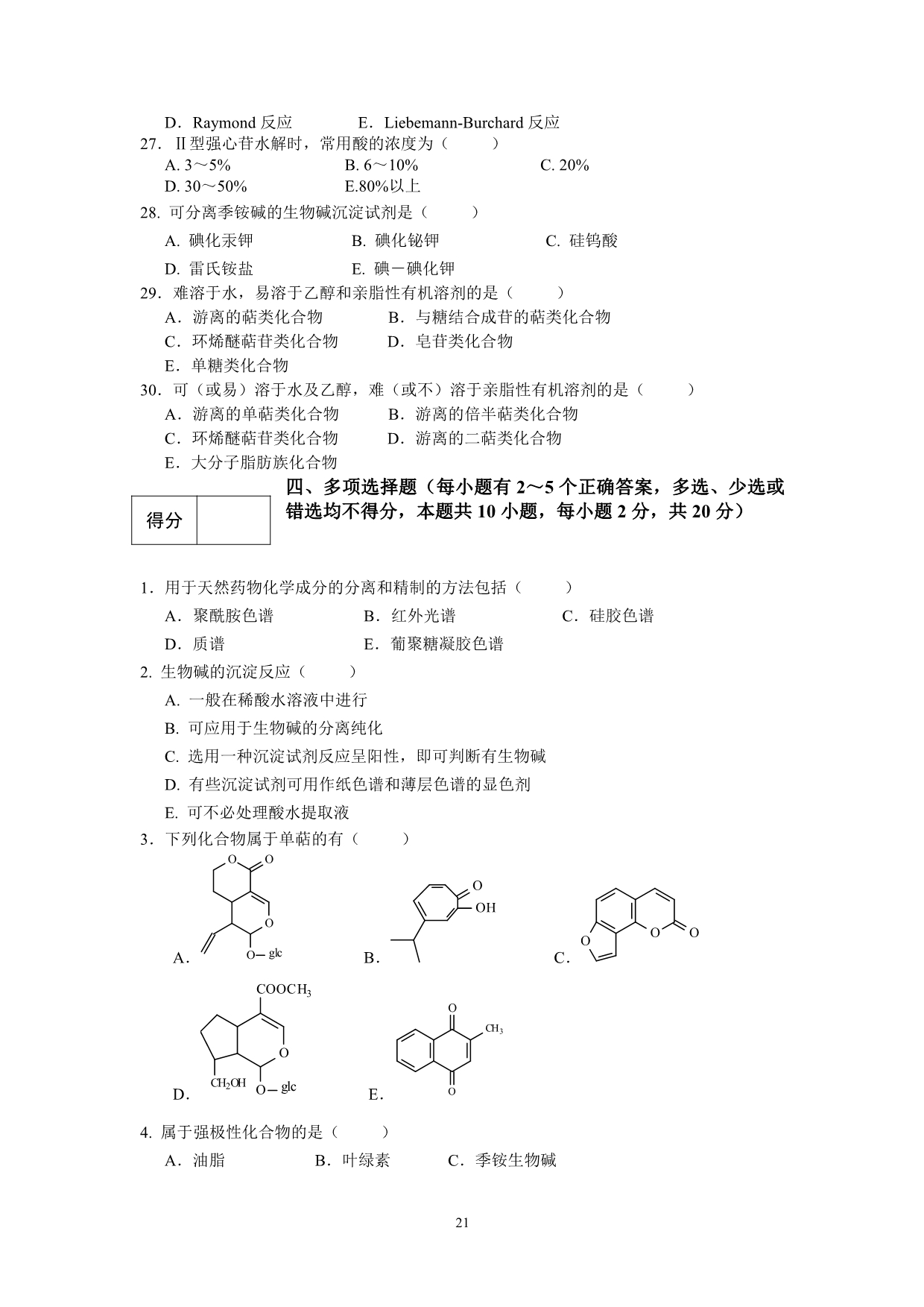 9-2-1 天然药物化学试题库