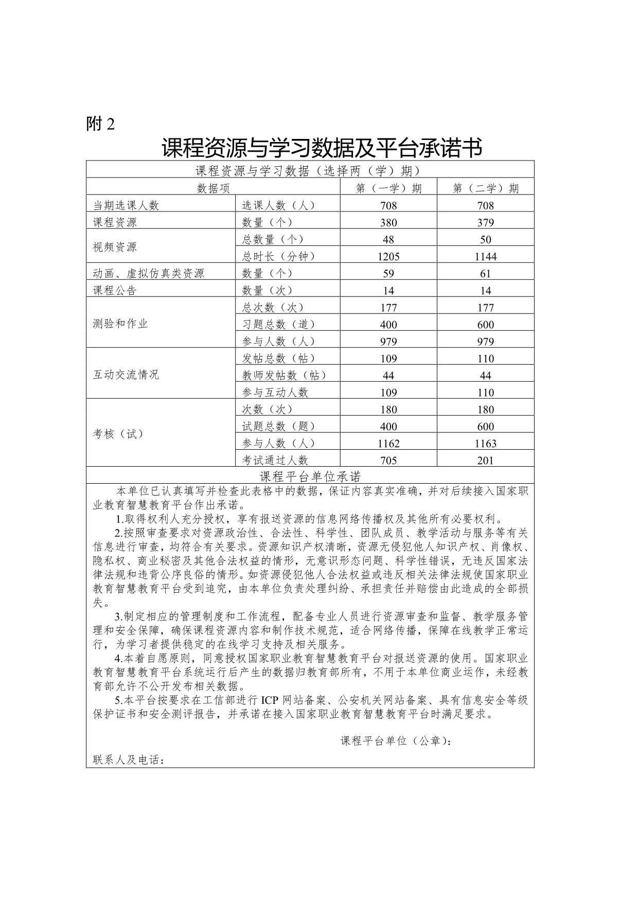证明材料11:课程资源与学习数据及平台承诺书