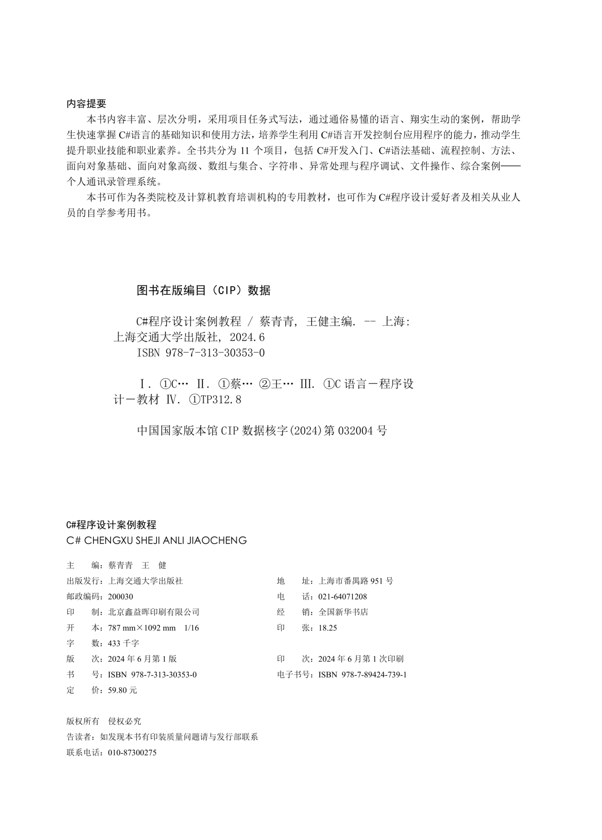 241.《C#程序设计案例教程》 +蔡青青+人工智能学院