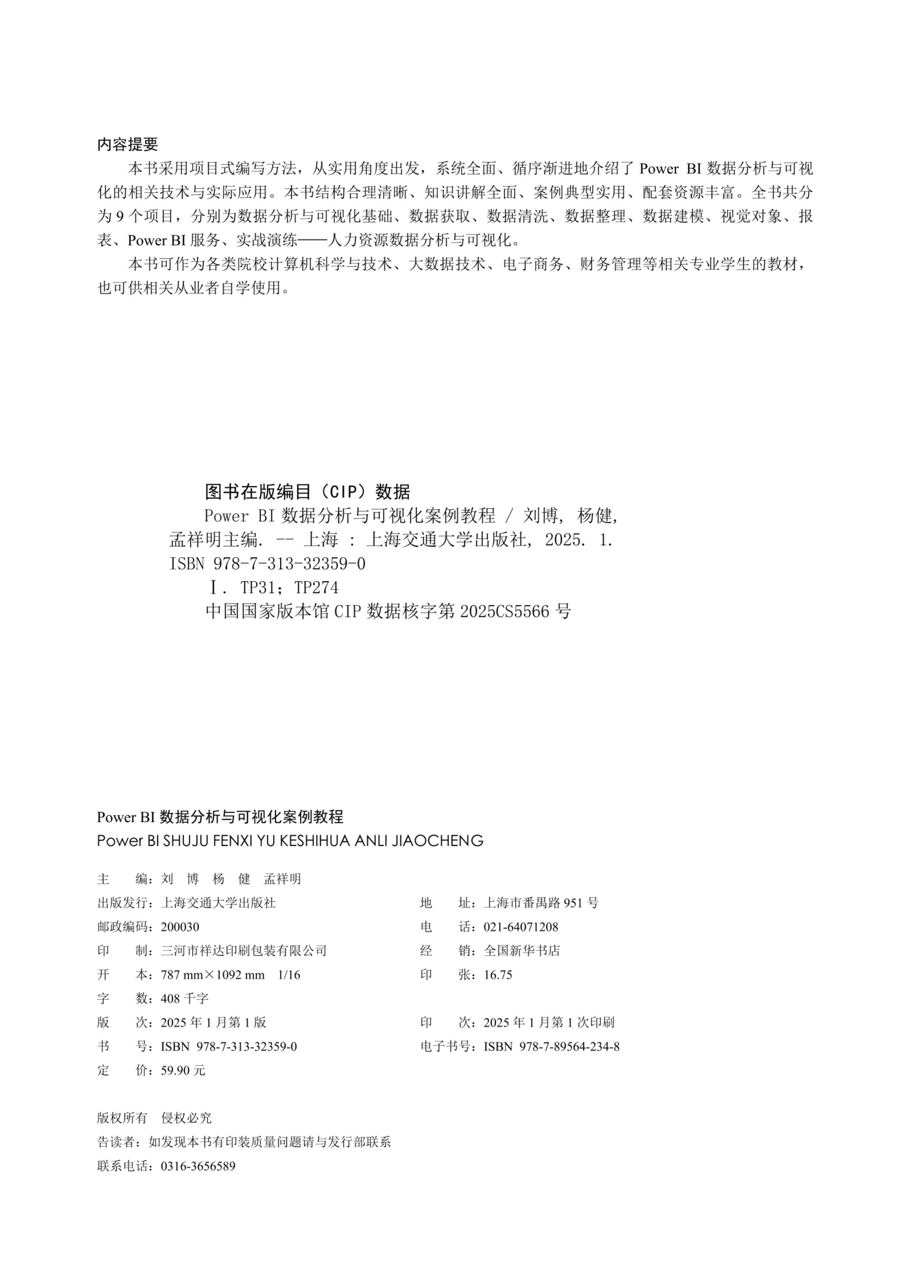 247.《Power BI数据分析与可视化案例教程(双色)(含微课)》+刘博+人工智能学院