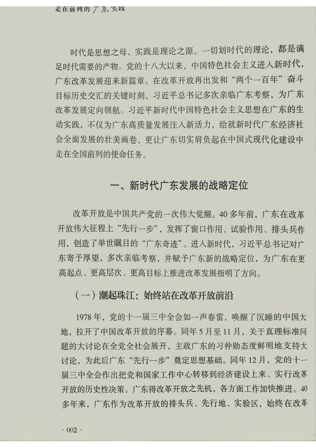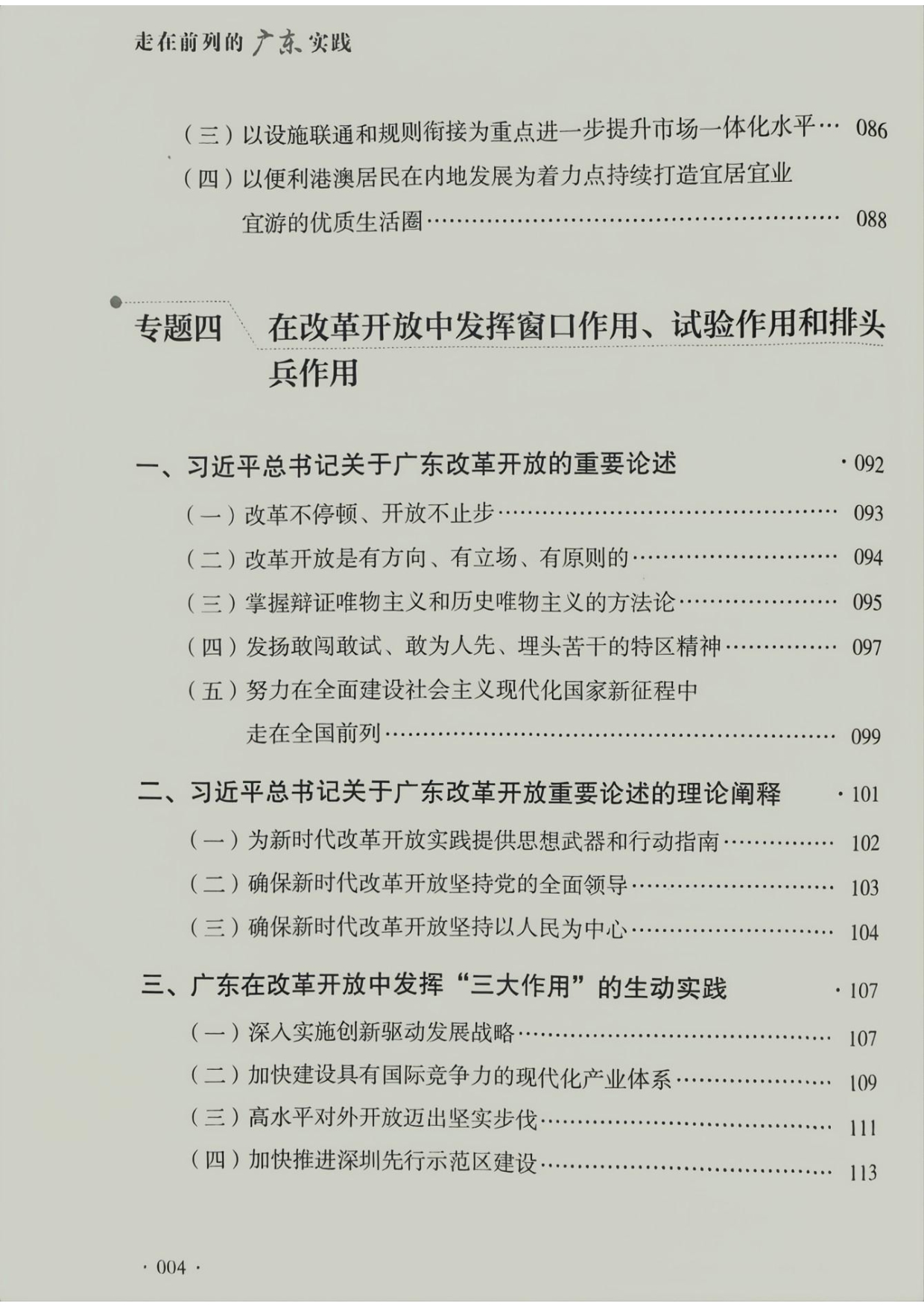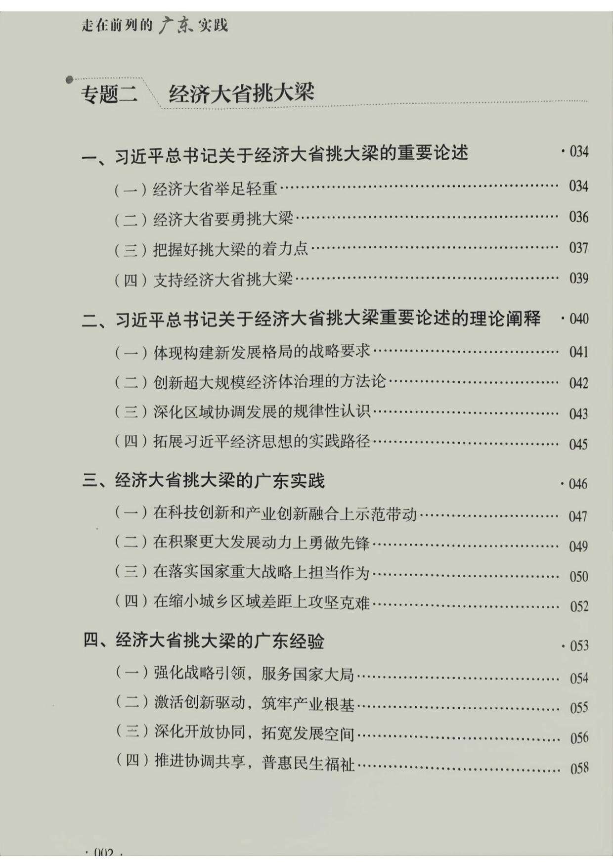314.《走在前列的广东实践》(封面、目录、第一章部分内容、封底)