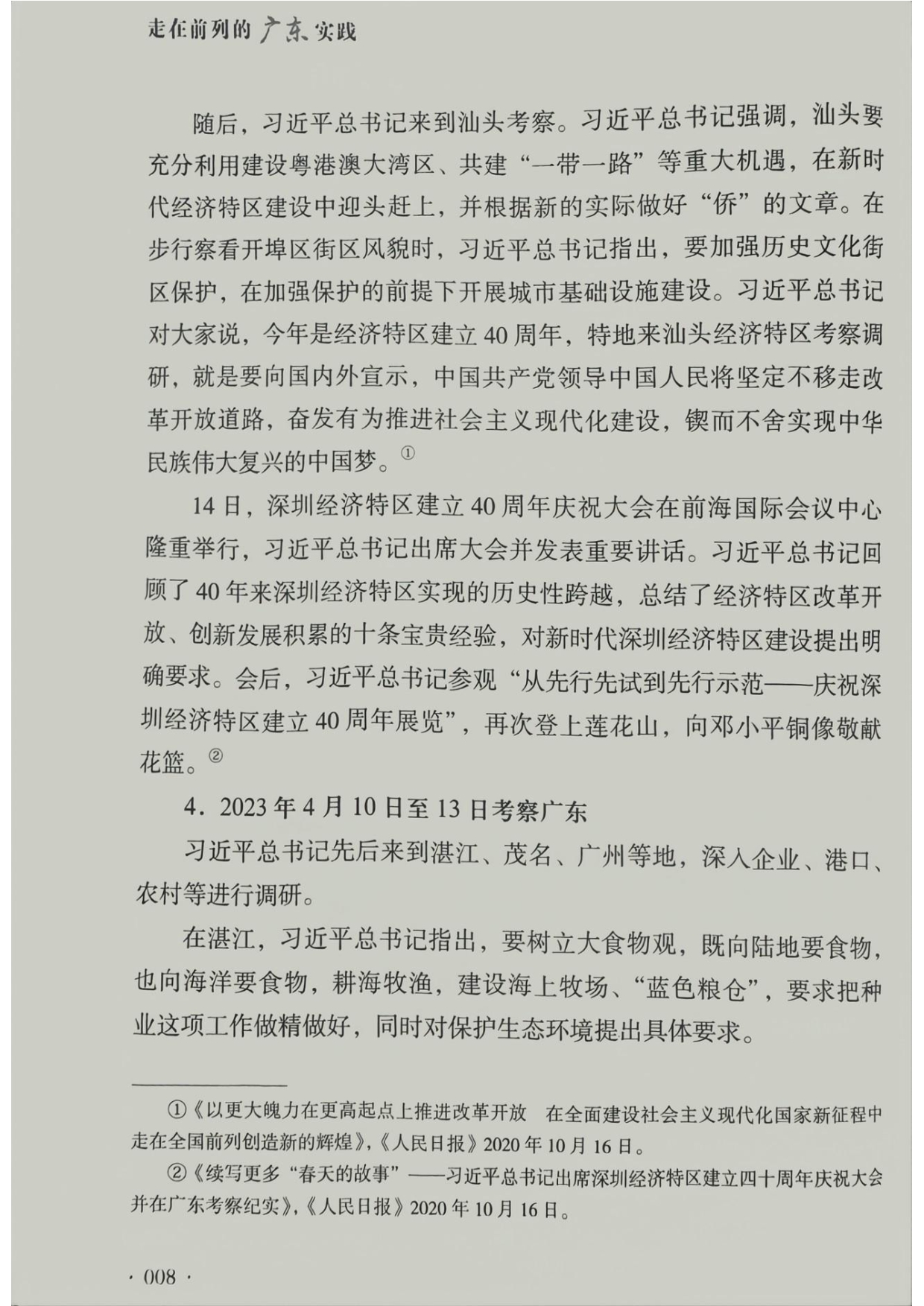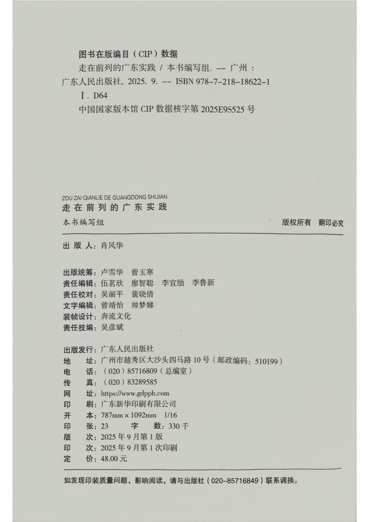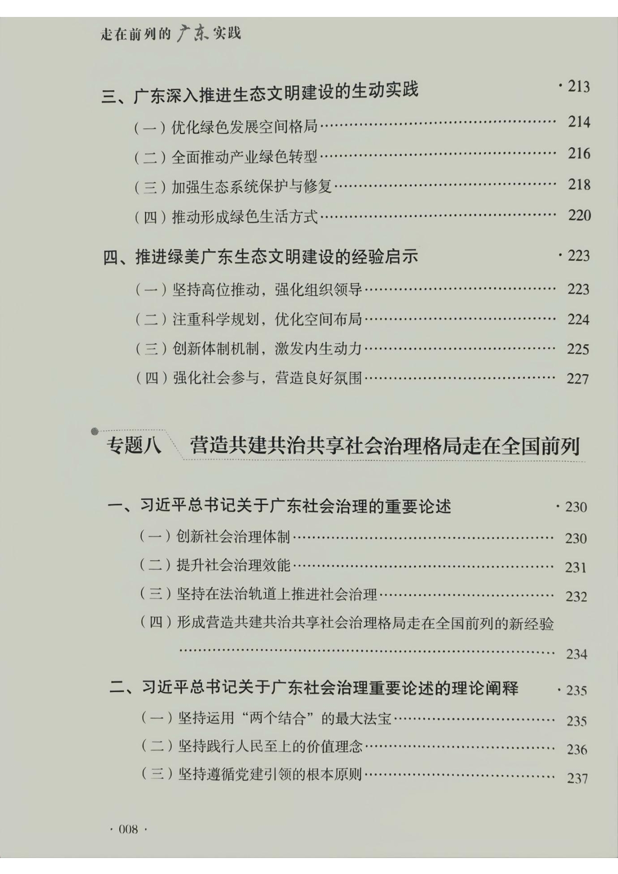 314.《走在前列的广东实践》(封面、目录、第一章部分内容、封底)