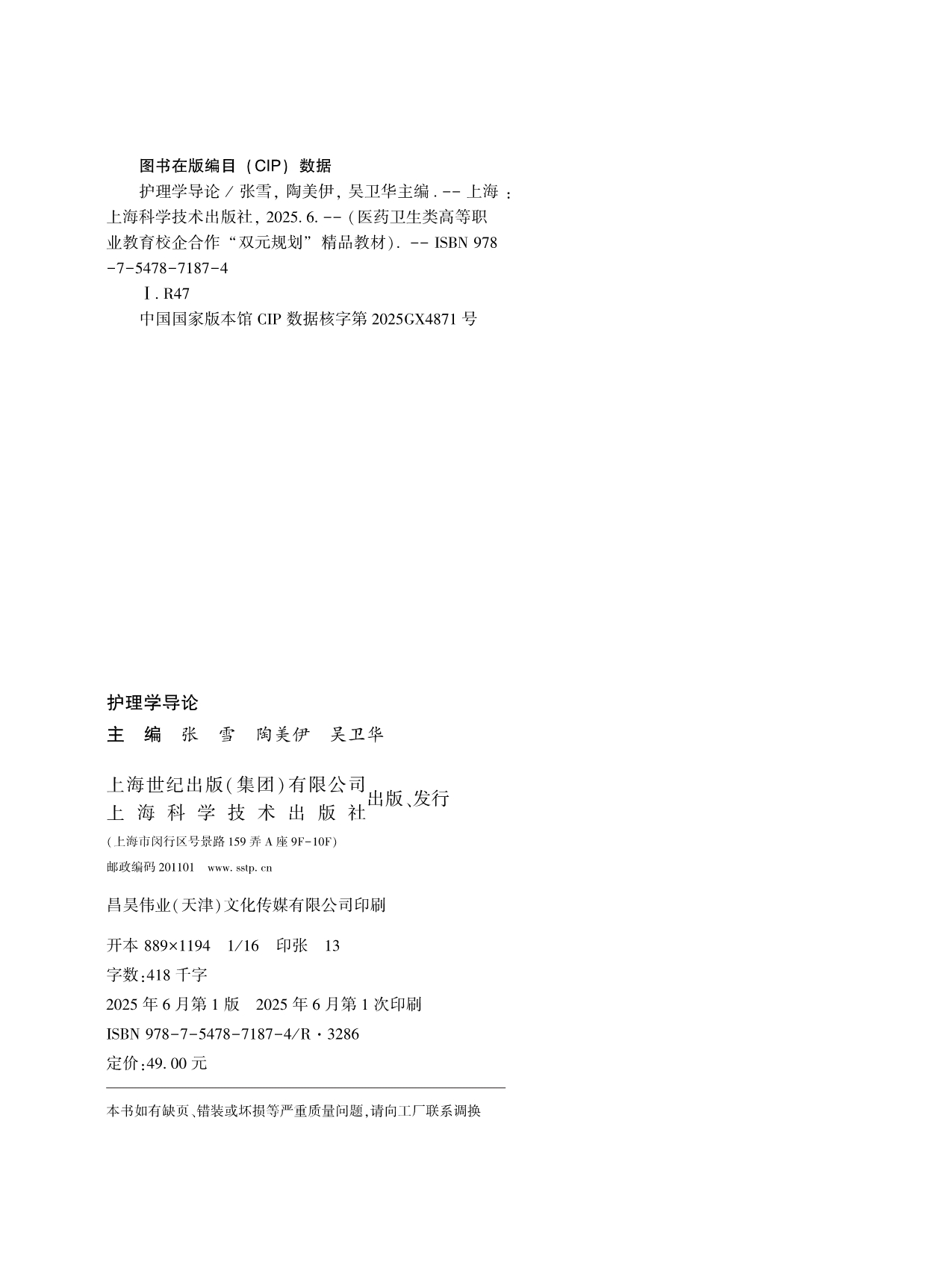 74.《护理学导论》张雪