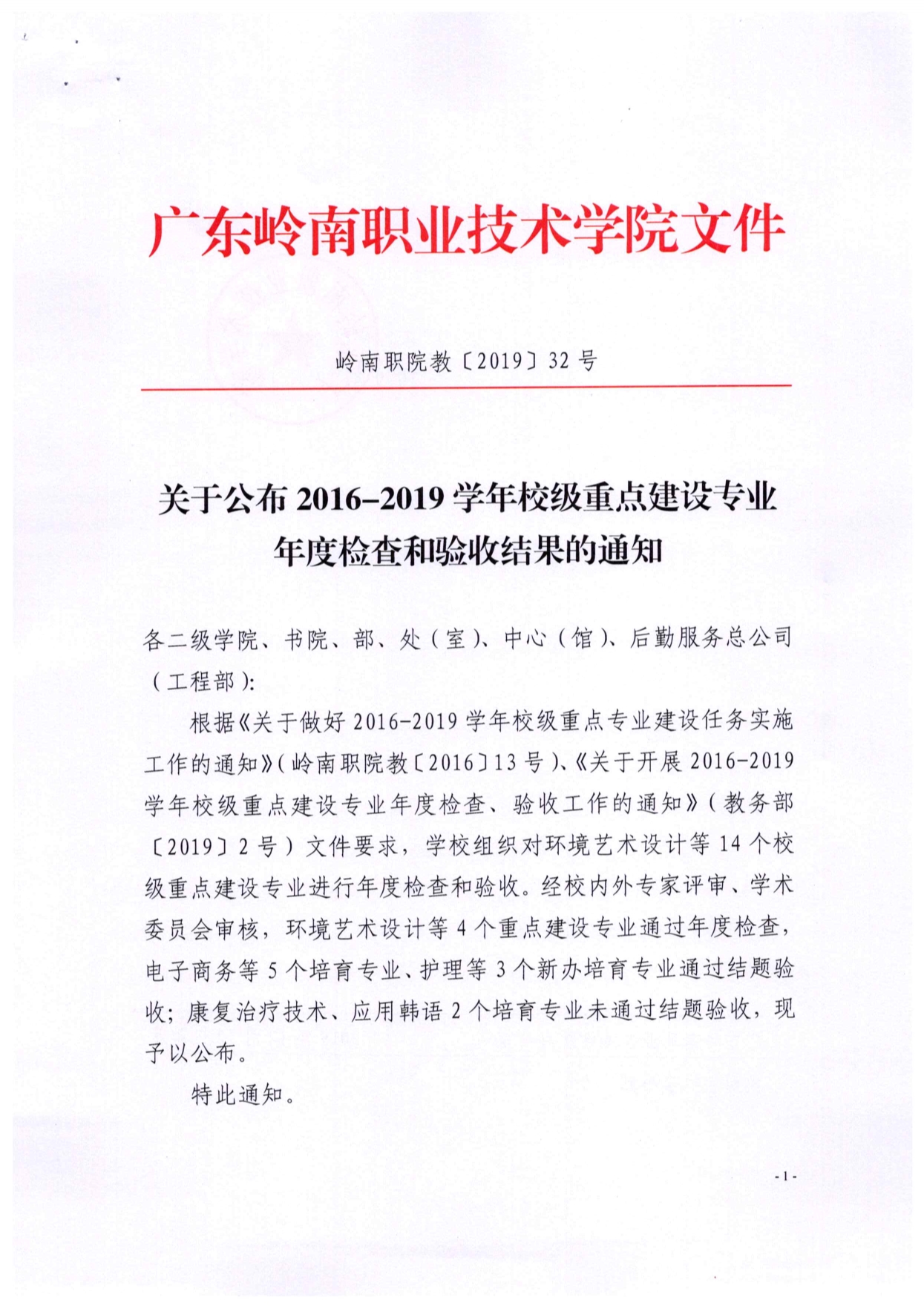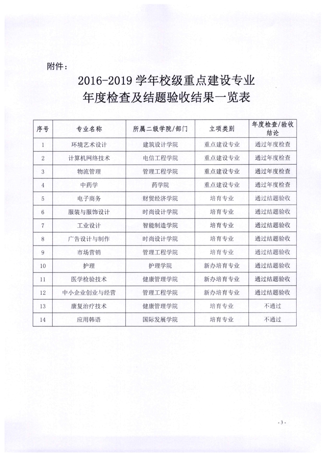 4.4 关于公布2016-2019学年校级重点建设专业年度检查和验收结果的通知