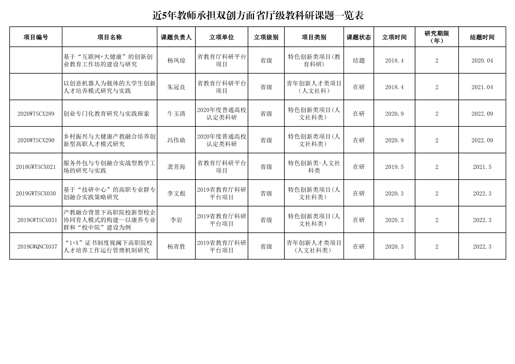 5.9 近5年教师承担双创方面省厅级教科研课题一览表
