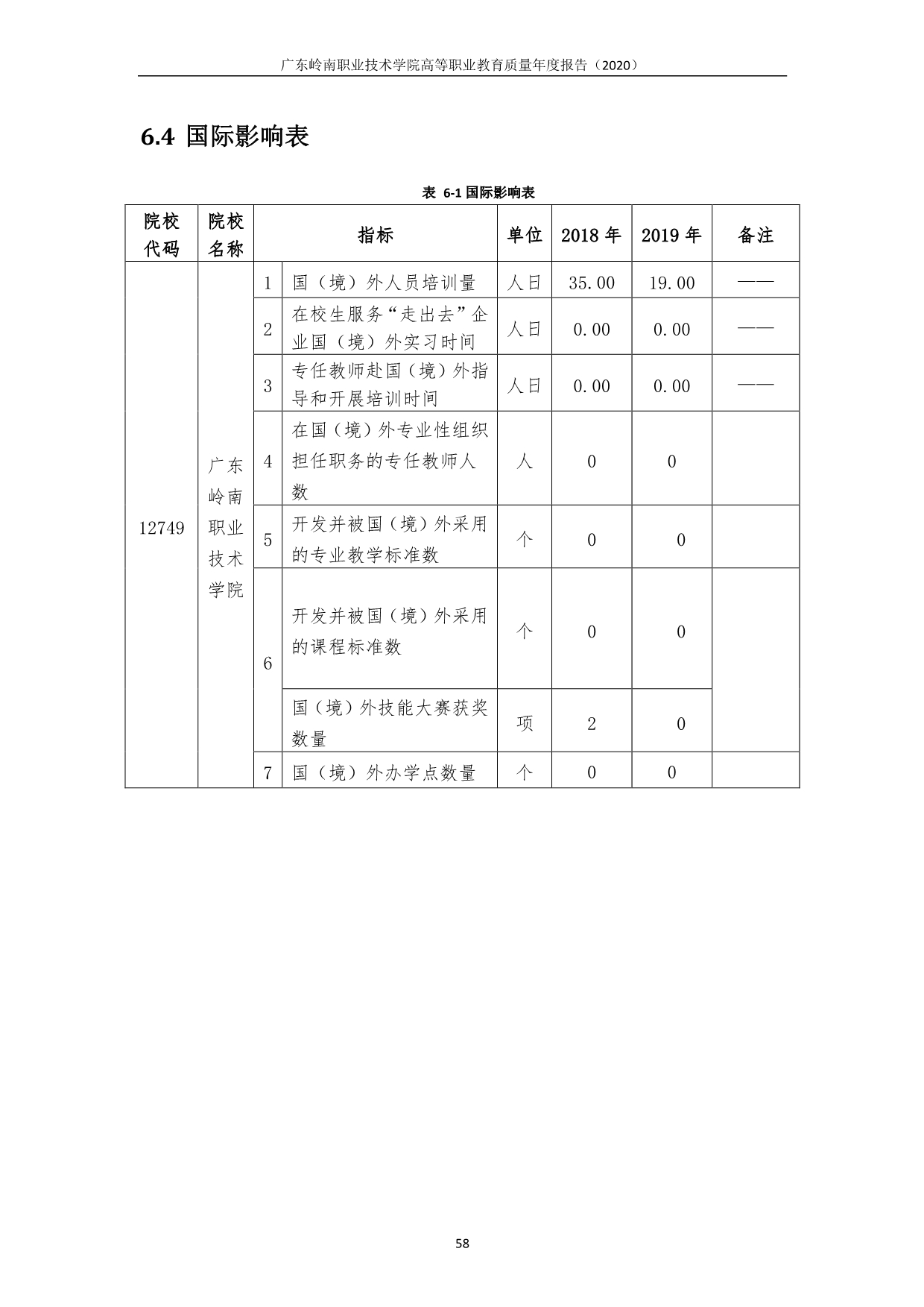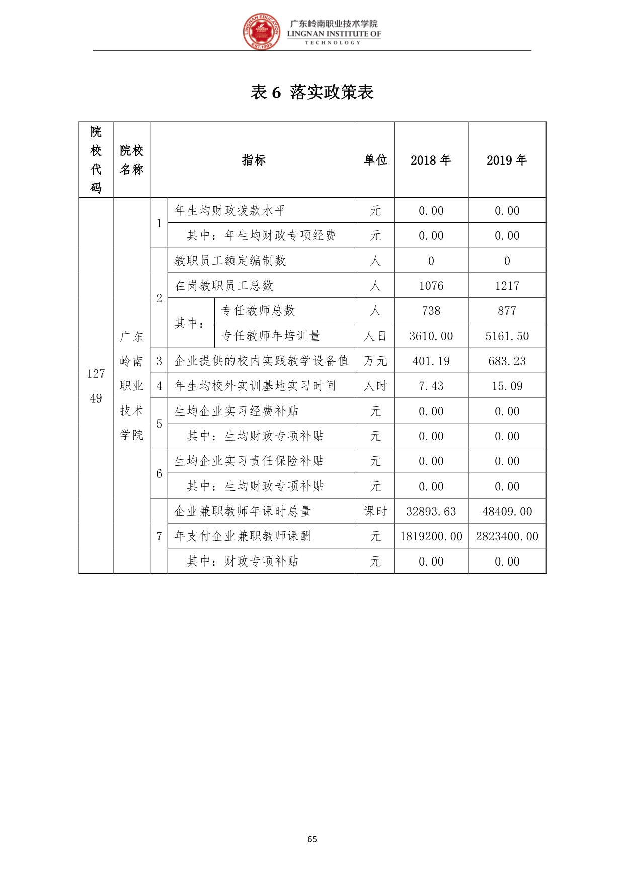 6.5 广东岭南职业技术学院高等职业教育质量年度报告(2019)