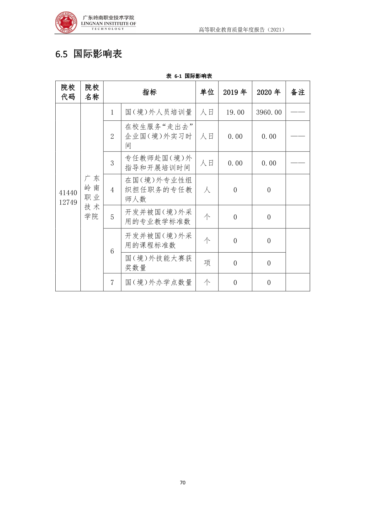 6.5 广东岭南职业技术学院高等职业教育质量年度报告(2020)