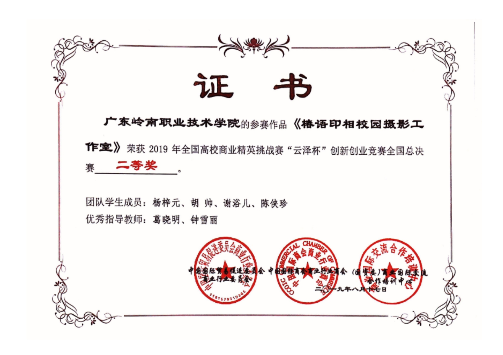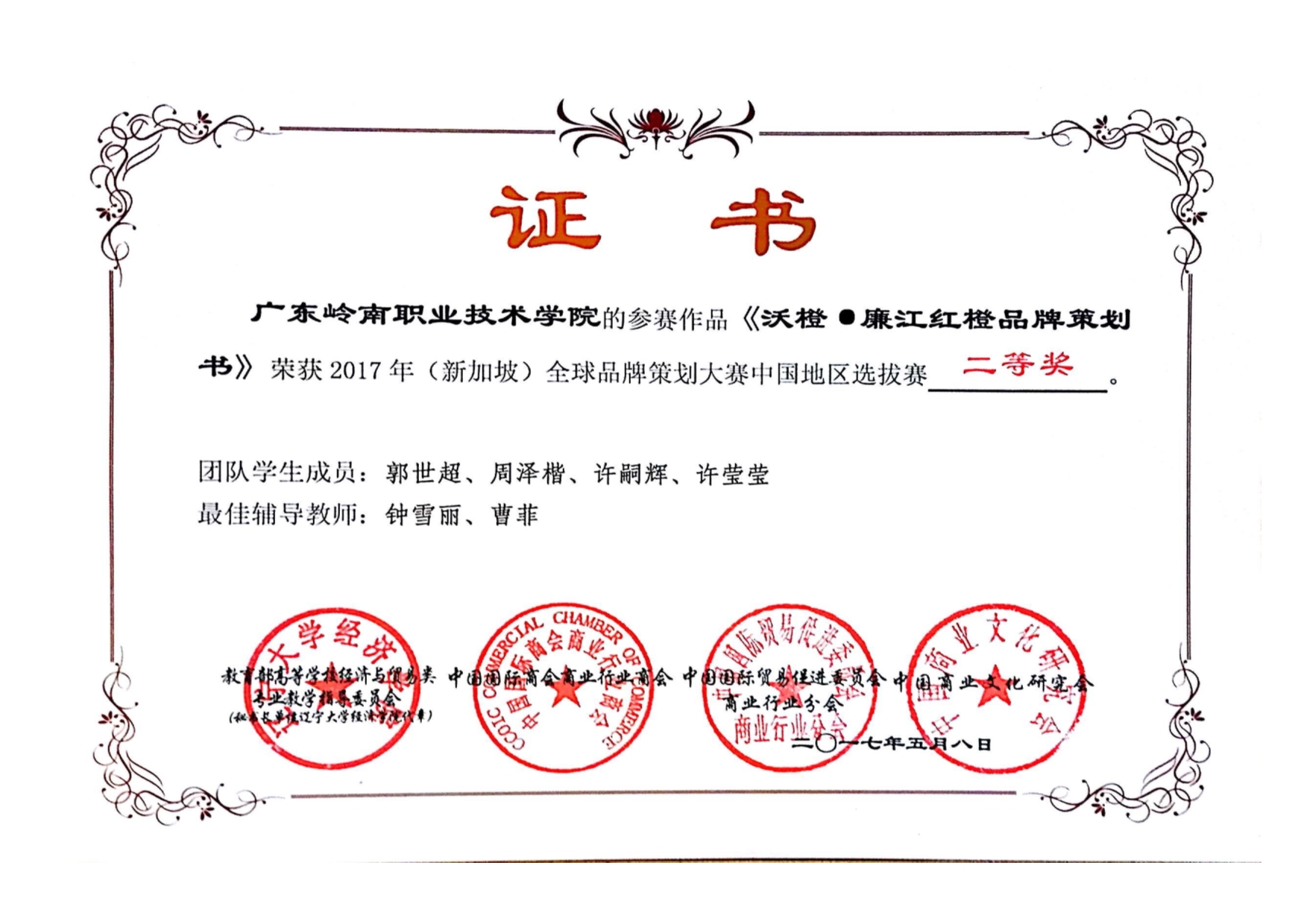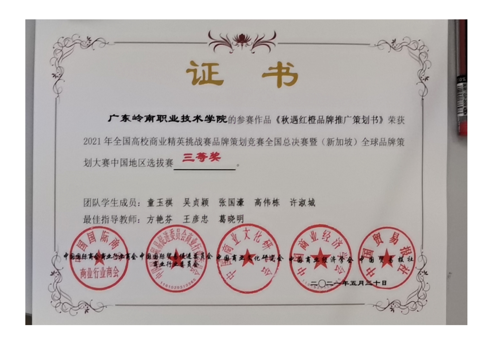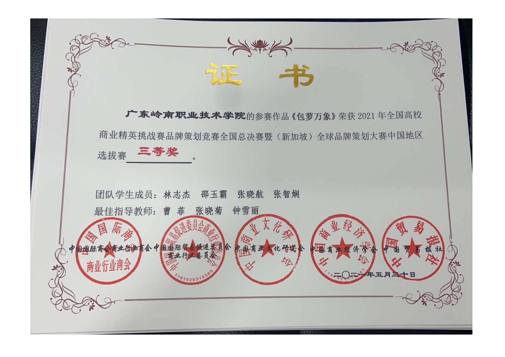 学生2015-2021年各类大赛获奖证书