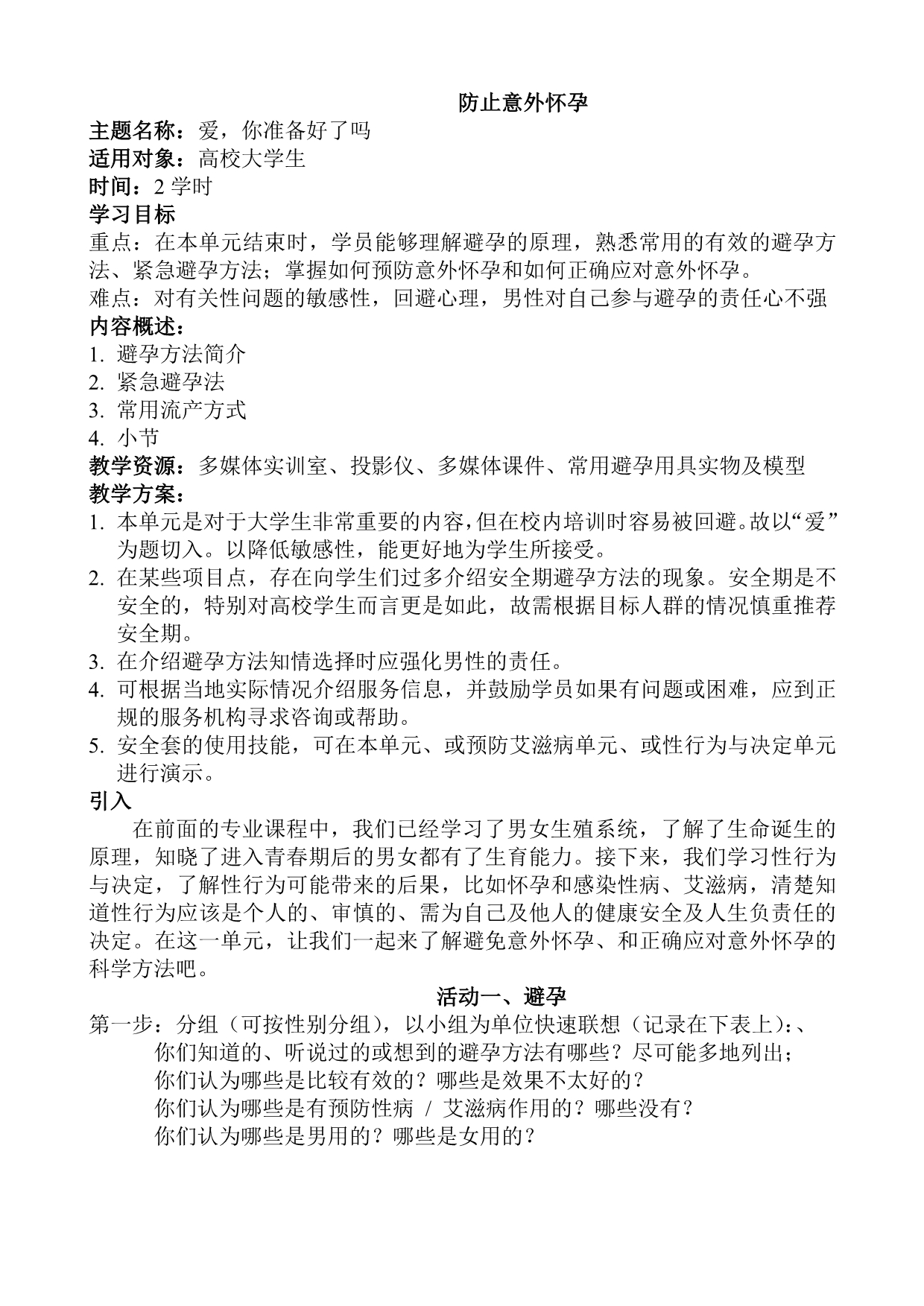 爱,你准备好了吗 教学活动方案