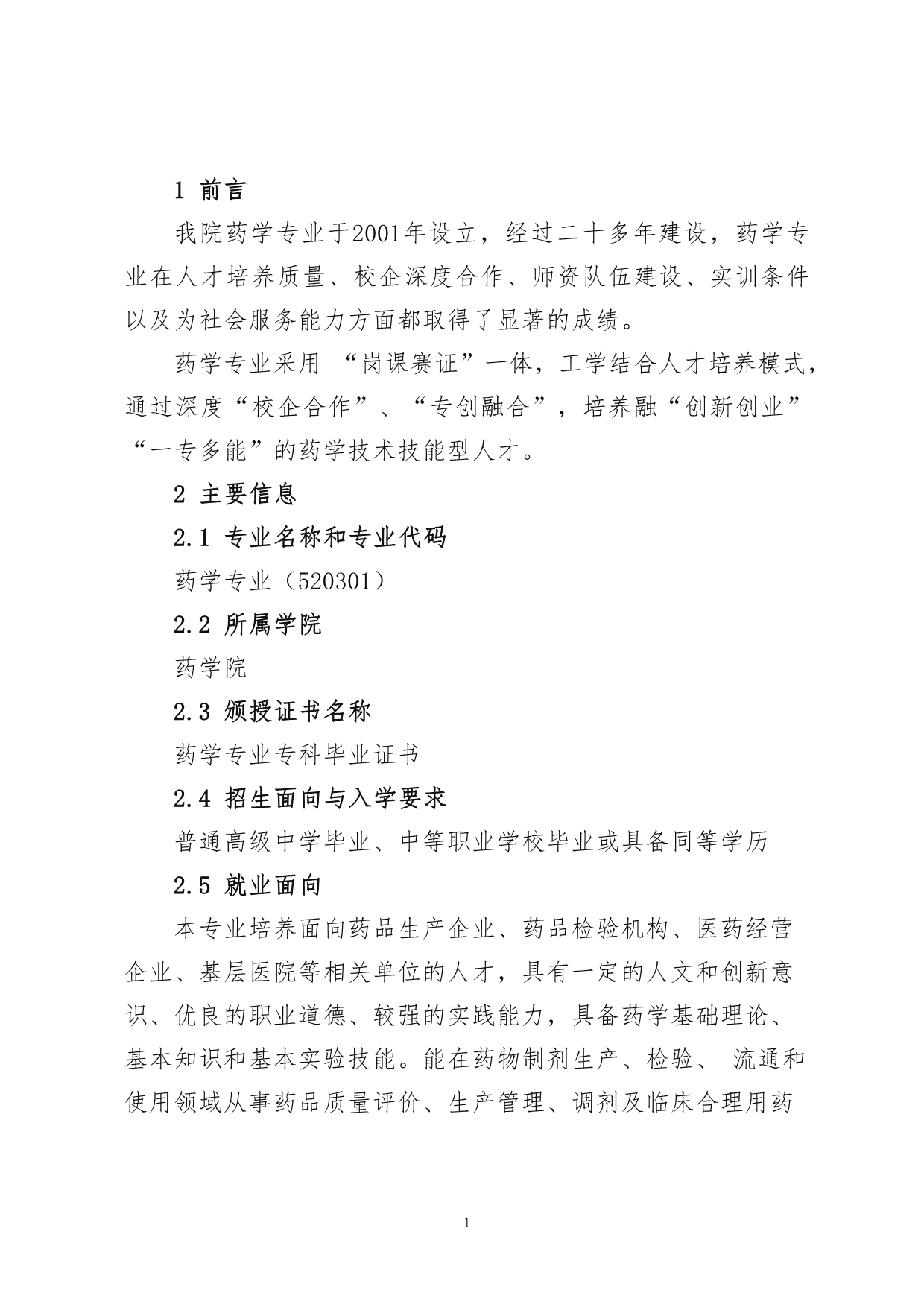 1.药学专业人才培养方案