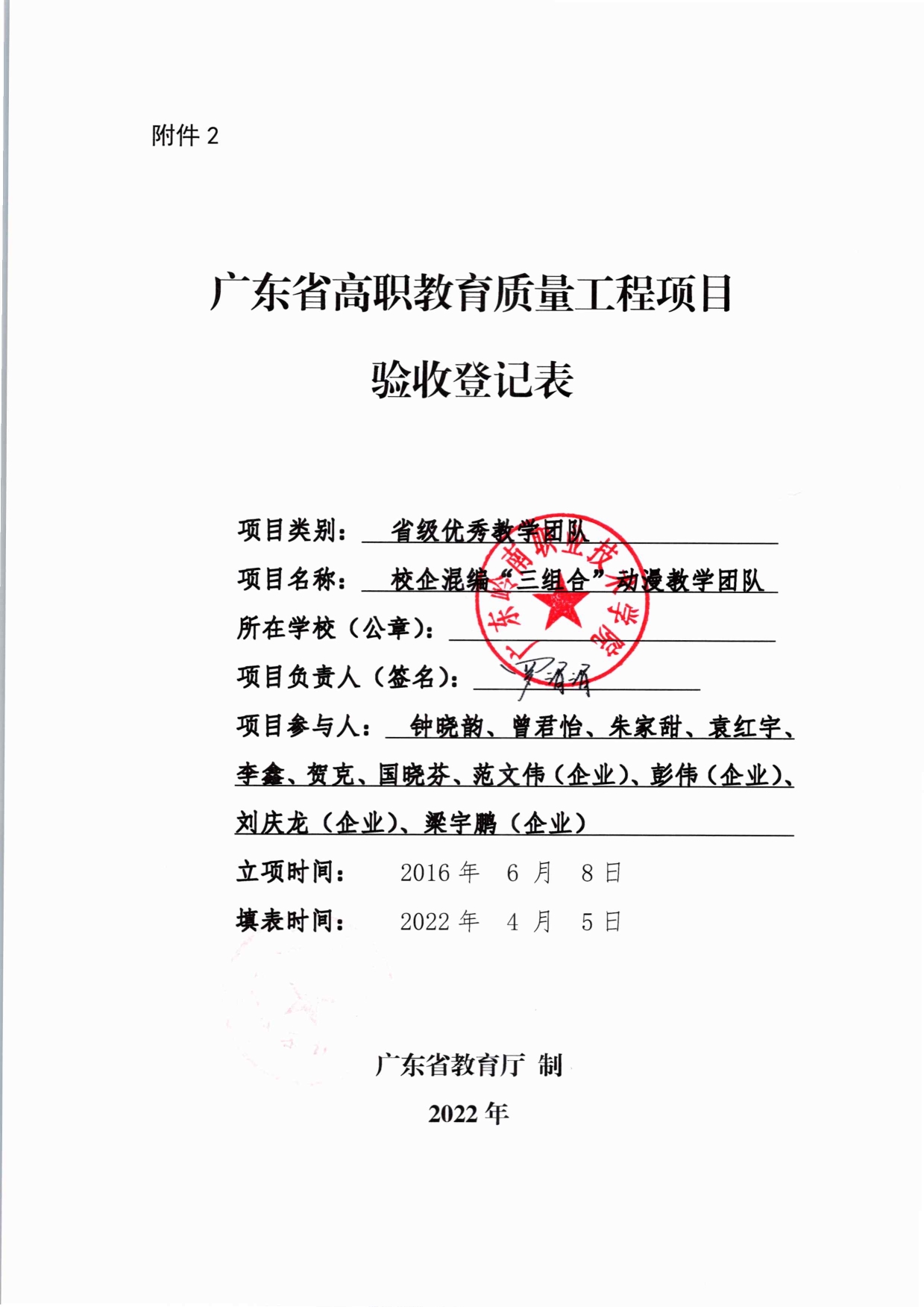2-4. 项目结题验收登记表