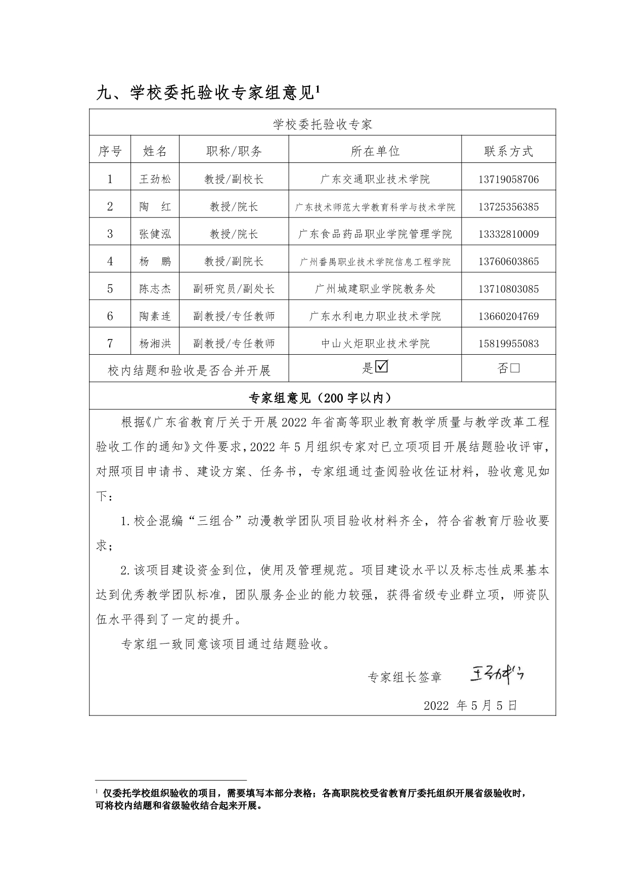 1-4. 项目结题验收登记表